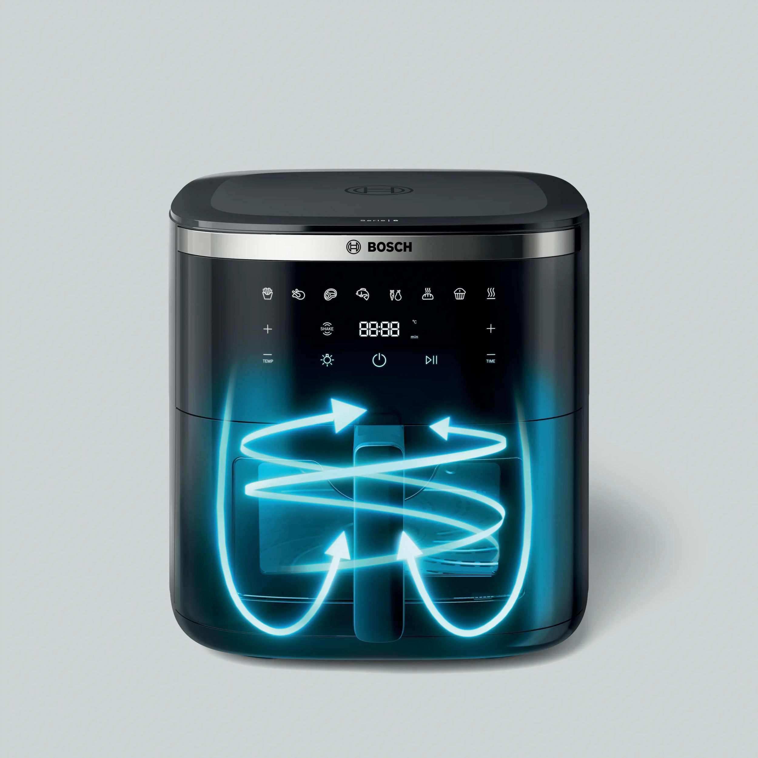 Accelerează spre savoare. Noile friteuze cu aer cald de la BOSCH sunt concepute pentru gătit mai rapid și curățare mai rapidă.