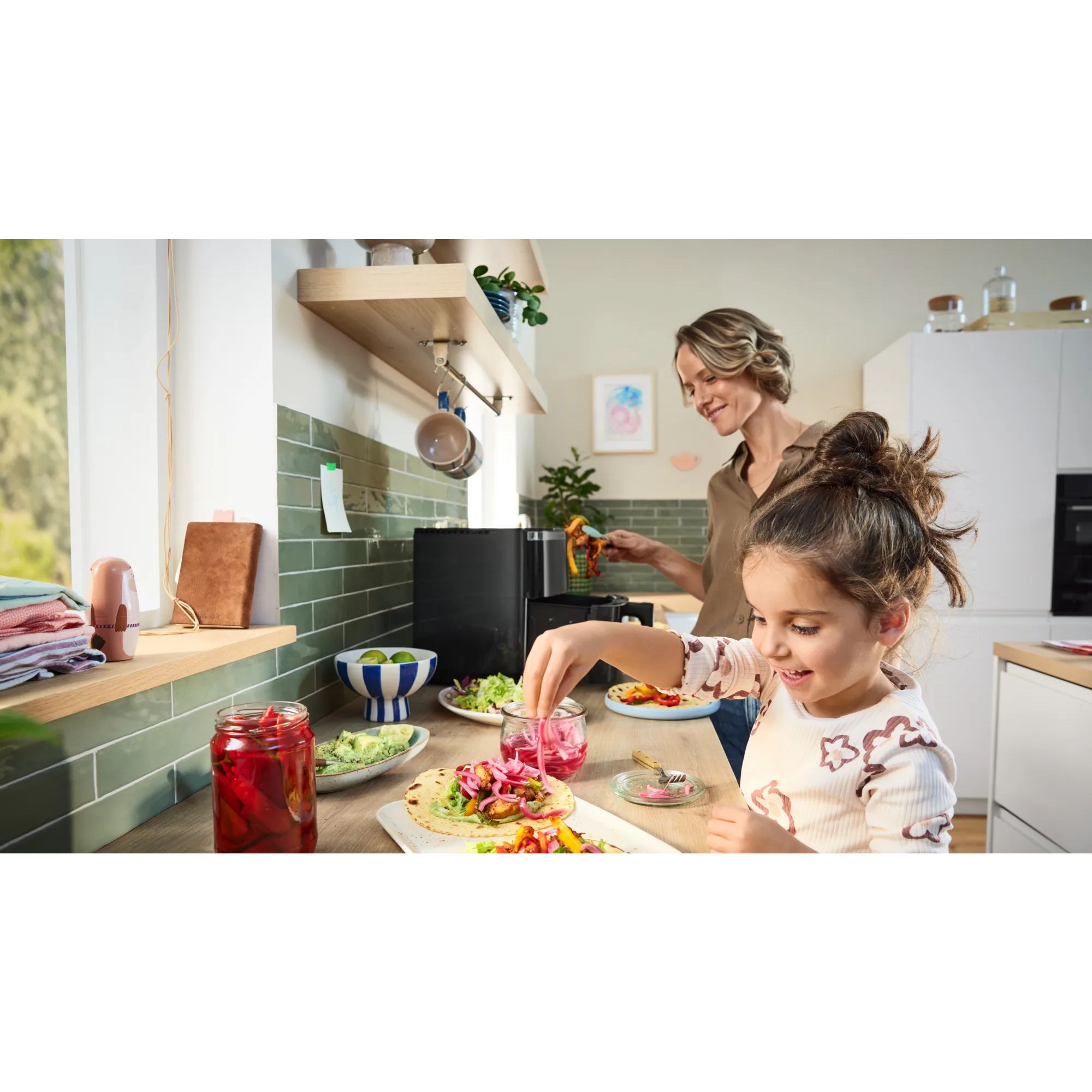 Gătitul pentru cei dragi nu a fost niciodată mai ușor cu friteuza noastră de 7,2 litri. Poți găti până la cinci porții consistente, garantând că nimeni nu pleacă flămând de la masă. Acum poți pregăti mese sănătoase și delicioase pentru toată familia cu aceeași ușurință ca atunci când gătești doar pentru tine.