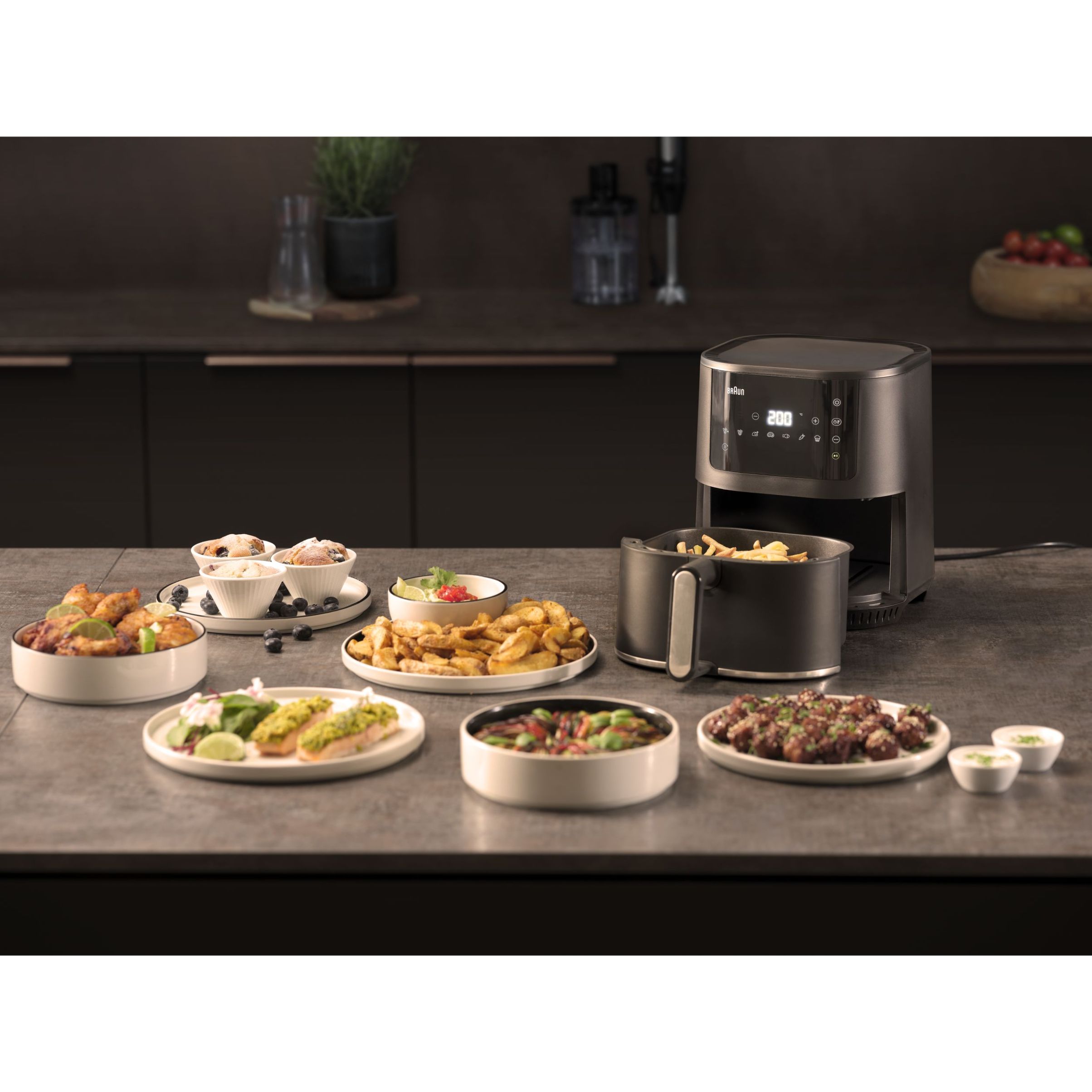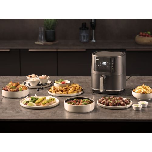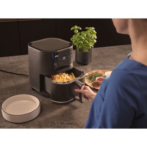 Experimentați bucuria gătitului simplu cu MultiFry 3 de la BRAUN. Această friteuză cu aer este mai rapidă decât un cuptor tradițional și nu necesită timp de preîncălzire, ceea ce face gătitul preparatelor gustoase să fie cu 50% mai rapid**. Și, datorită sertarului lavabil în mașina de spălat vase, spălarea vaselor economisește și timp. MultiFry 3 vă permite să vă bucurați de mâncărurile preferate - mai sănătoase.