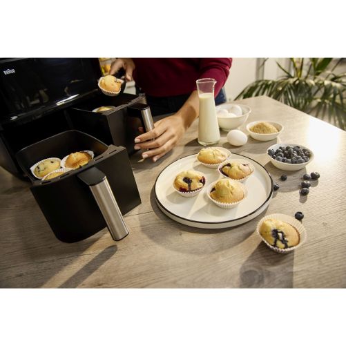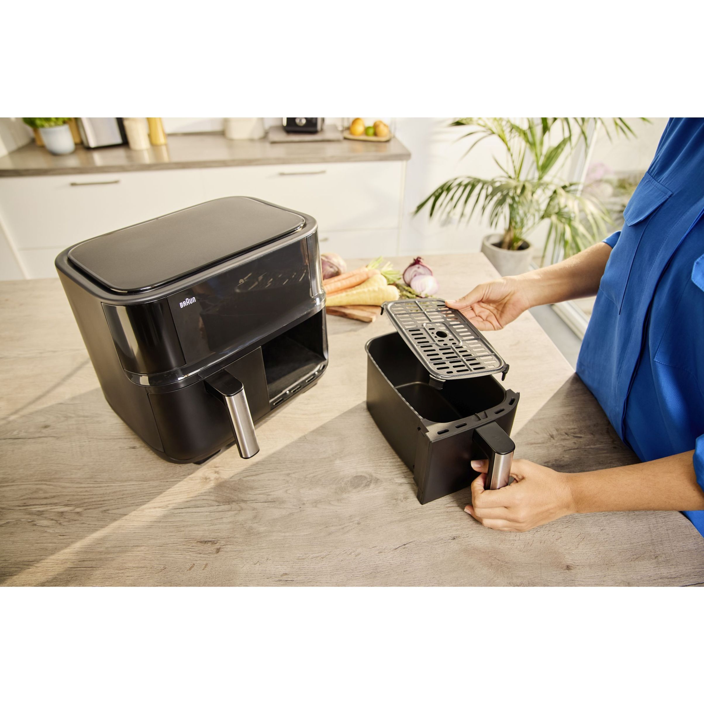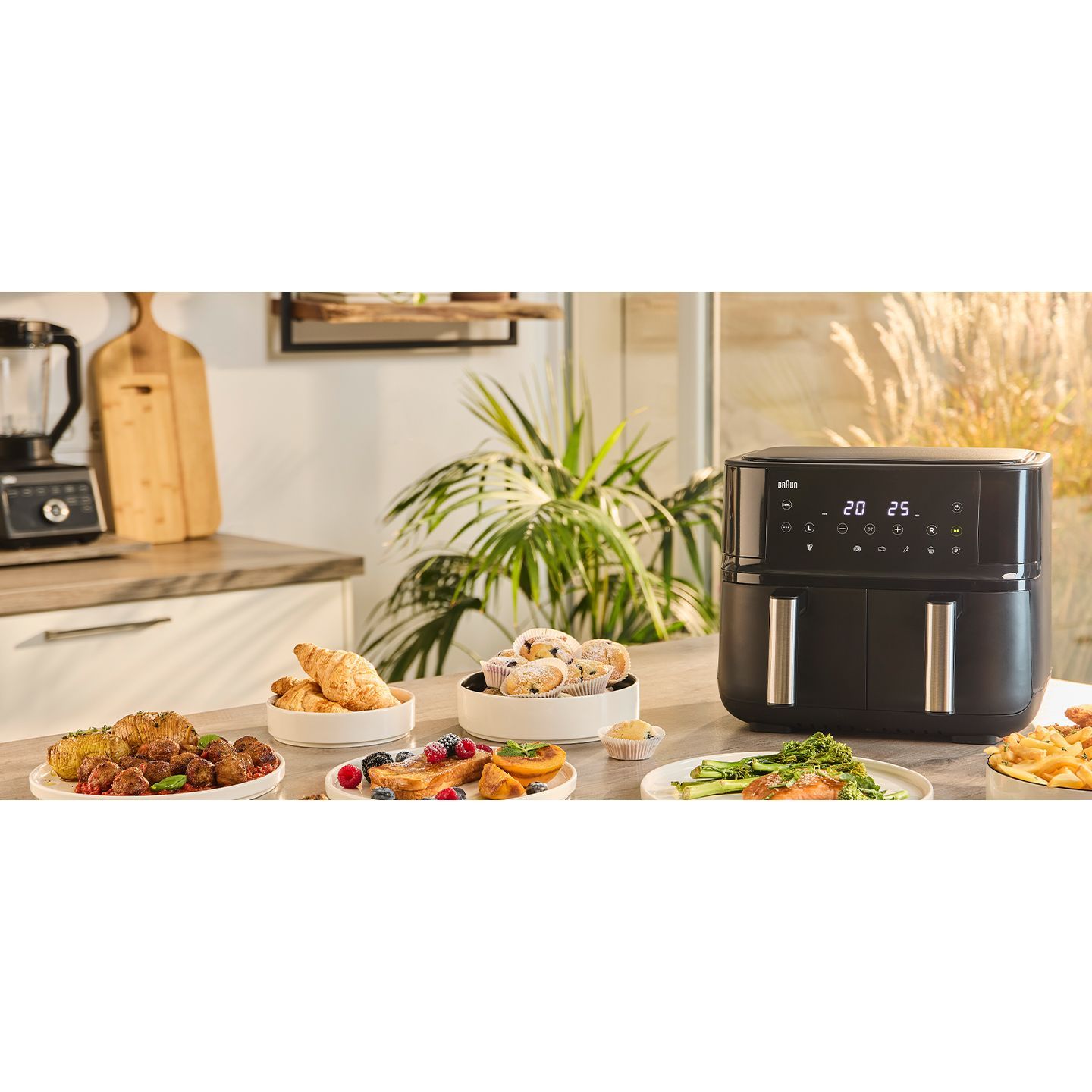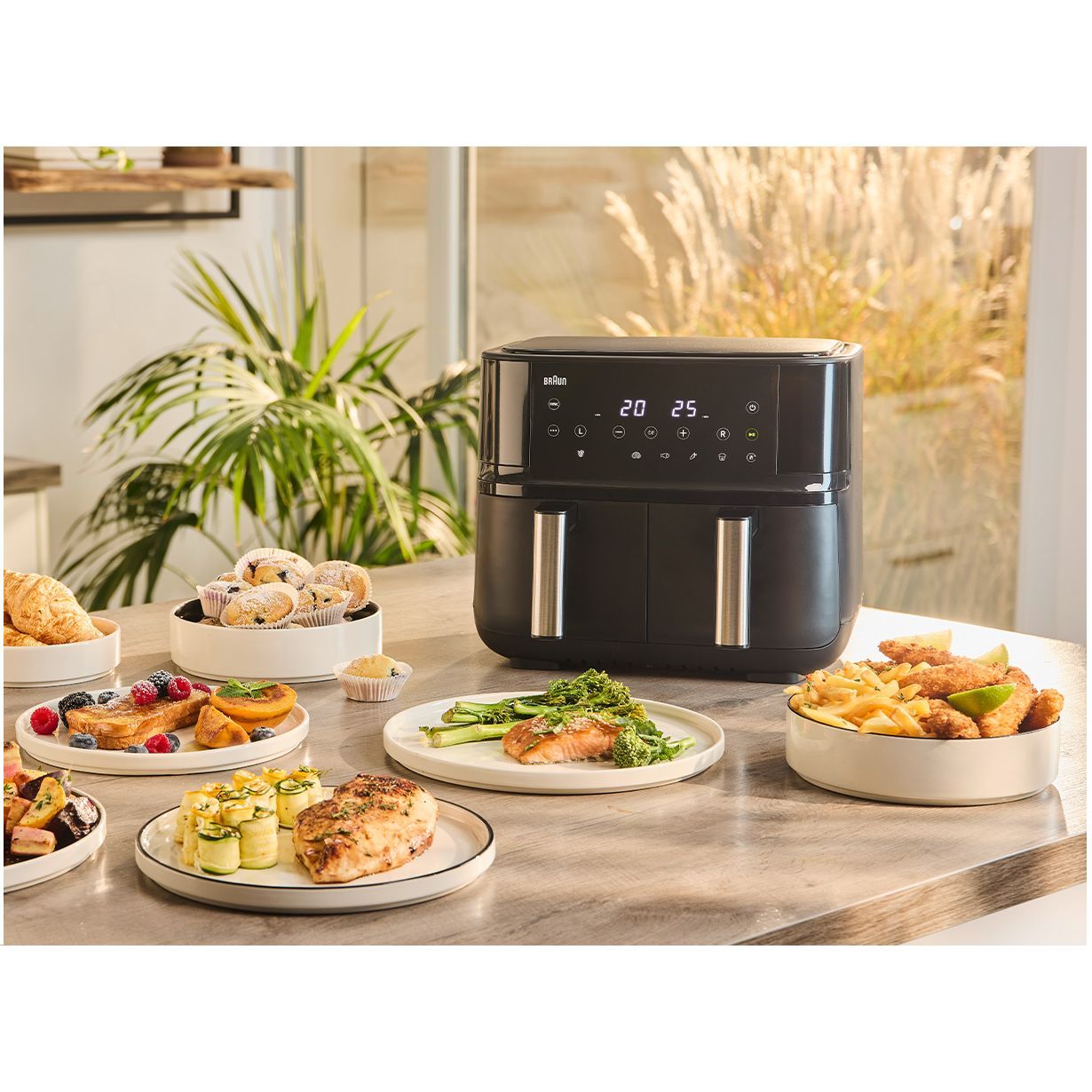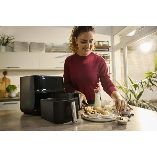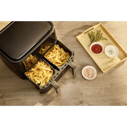 Sertarele de 4 L oferă o capacitate suficientă pentru a găti o varietate de gustări, garnituri și mese complete, cum ar fi 1,8kg de cartofi prăjiți (0,9kg per sertar) și un pui întreg (1,4kg).