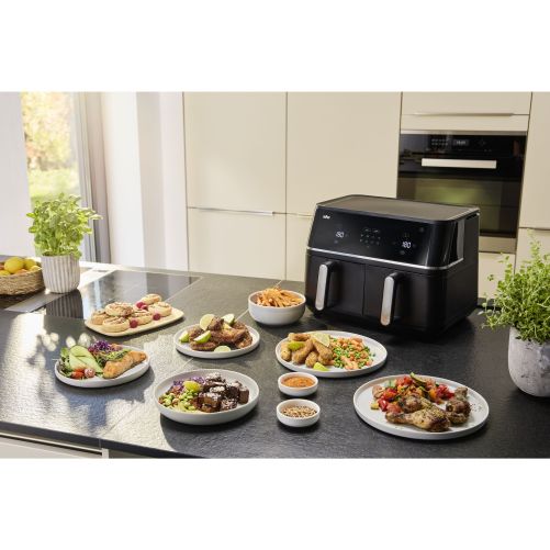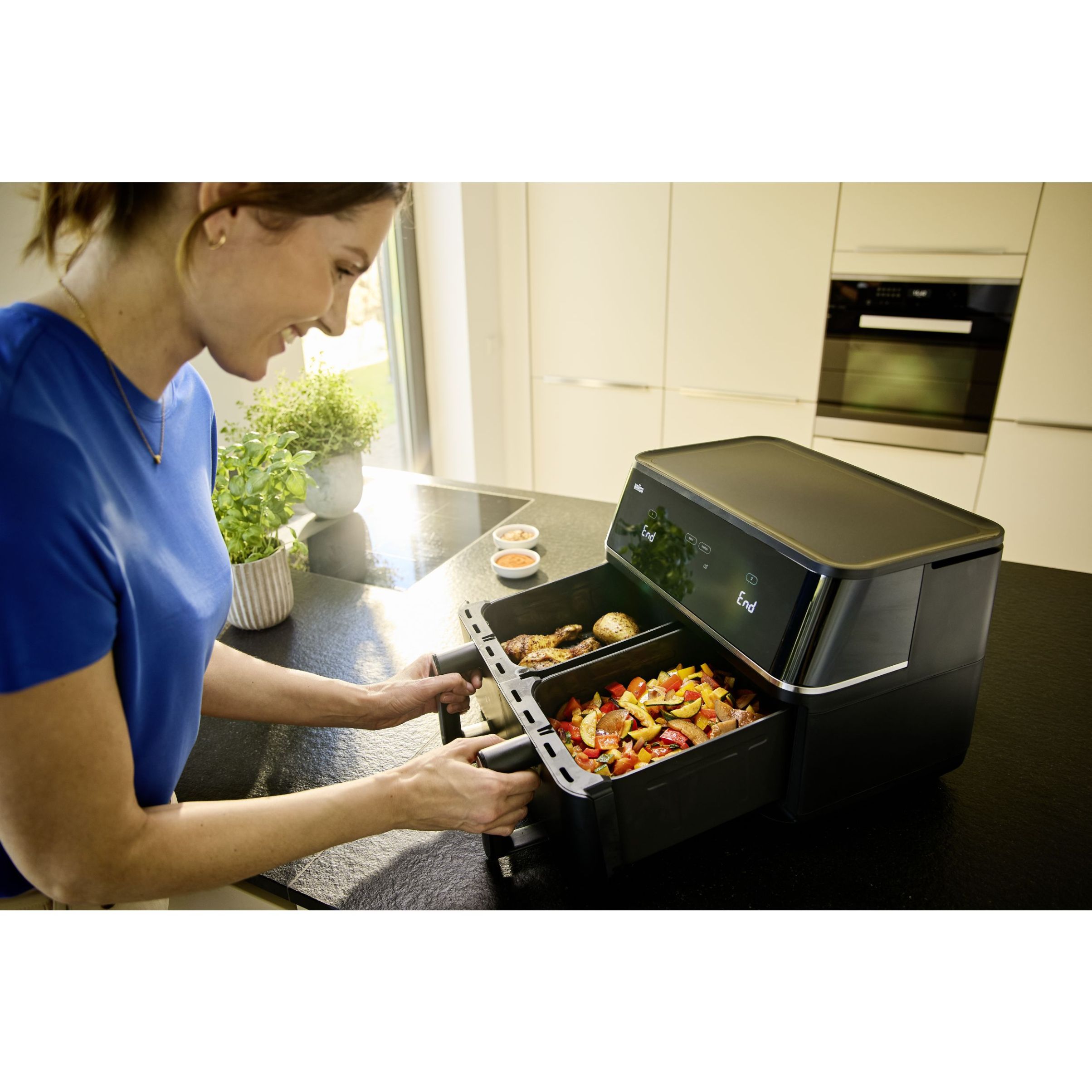 Două sertare de capacitate foarte mare de 5 litri permit gătirea pentru întreaga familie: prepară un pui întreg de 1,4kg cu 1,2kg de cartofi prăjiți în același timp.