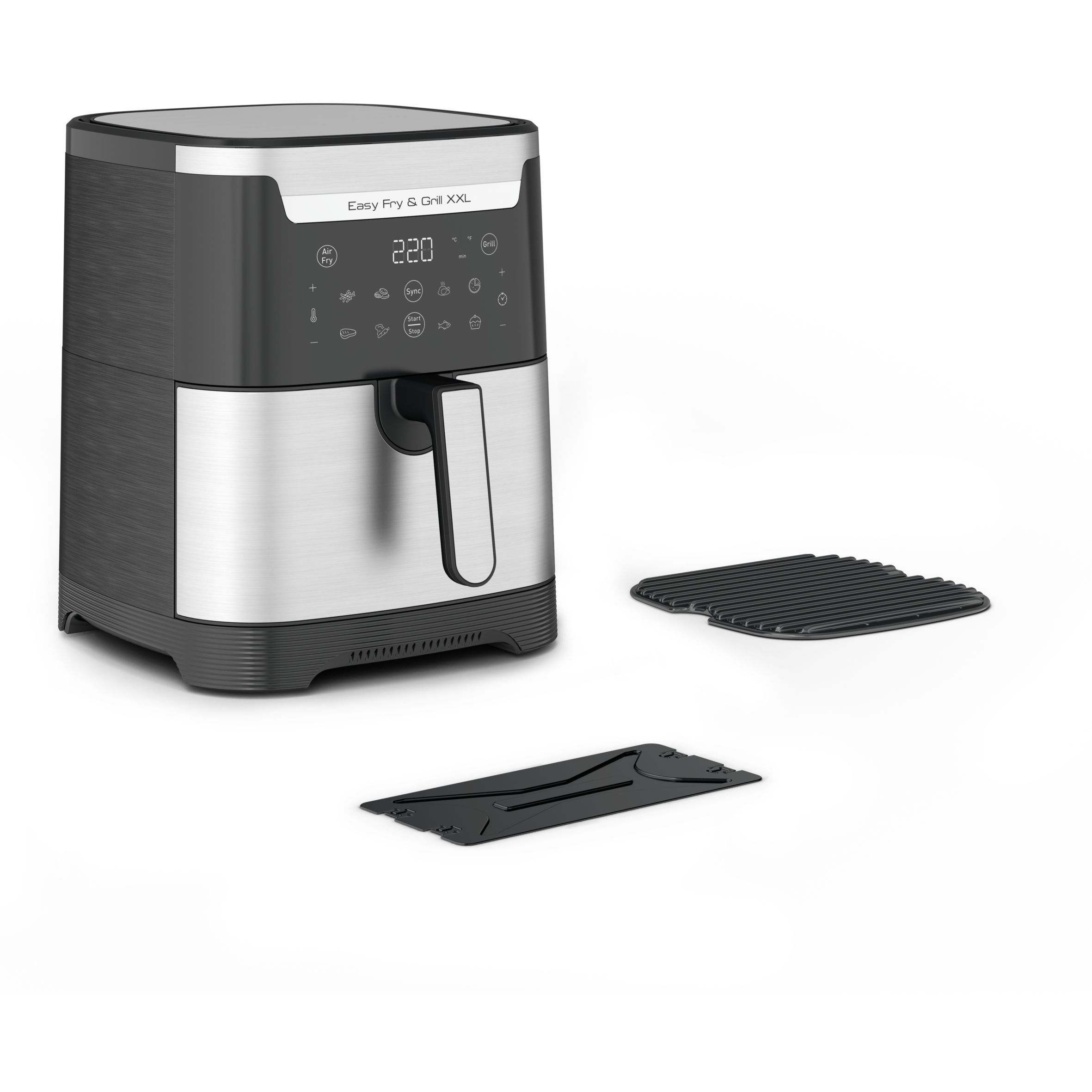 Friteuza cu aer cald, cu accesoriu gratar incorporat - Prepara 2 retete simultan.