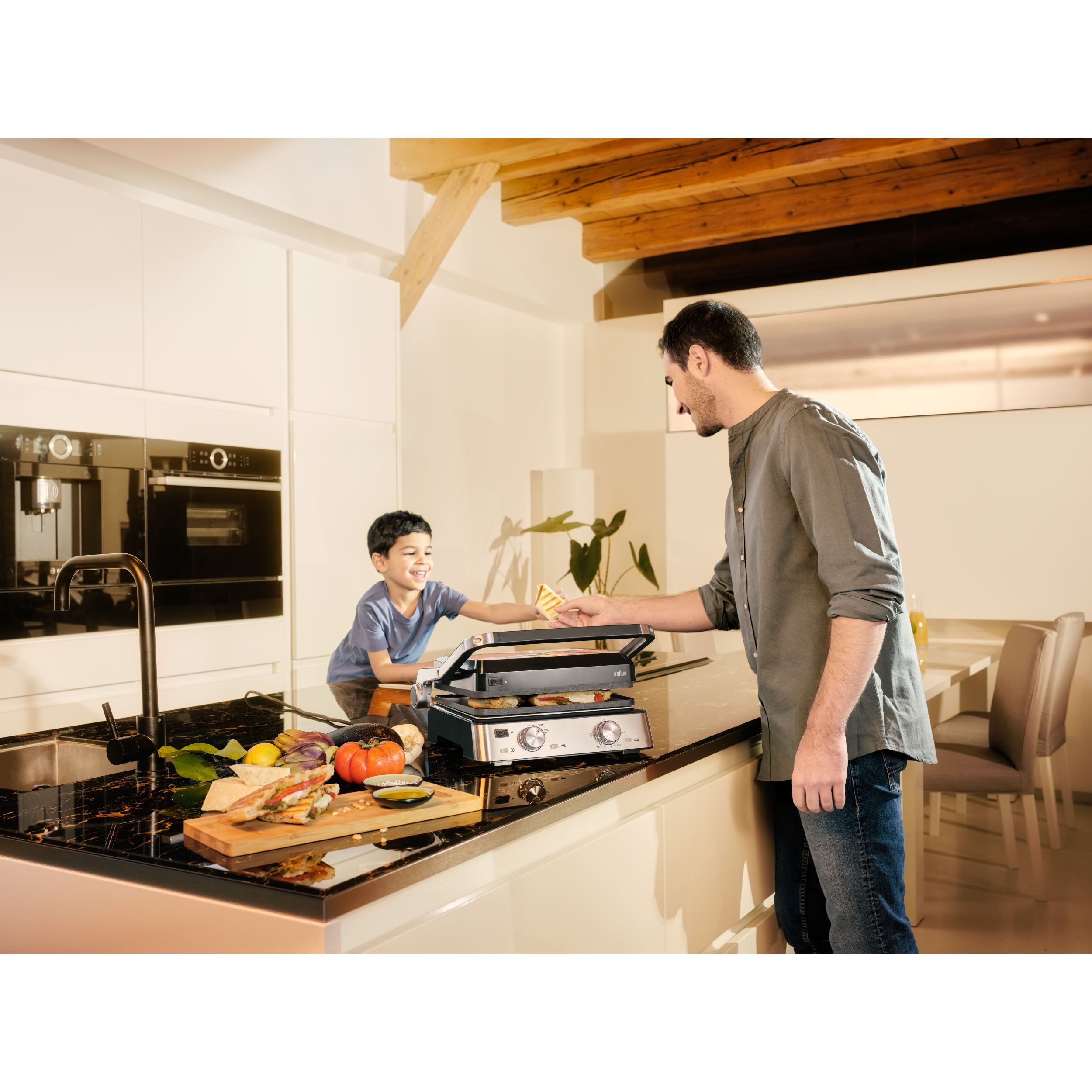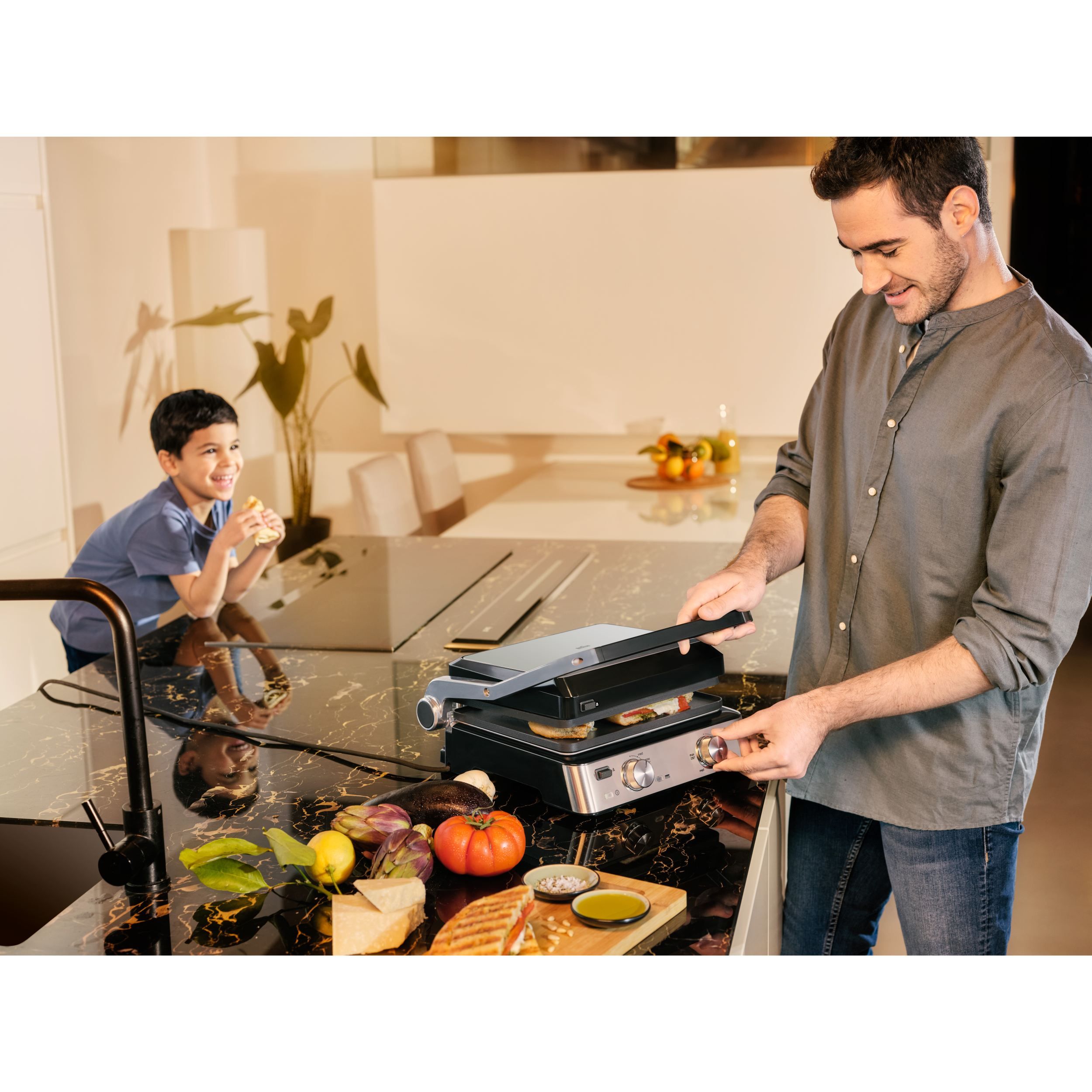 Datorită combinației inteligente dintre cele două plăci diferite și cele trei moduri flexibile de gătit,te poți bucura de o versatilitate nelimitată. Experimentează rezultate perfecte la grătar pentru micul dejun, prânz, cină și gustări.