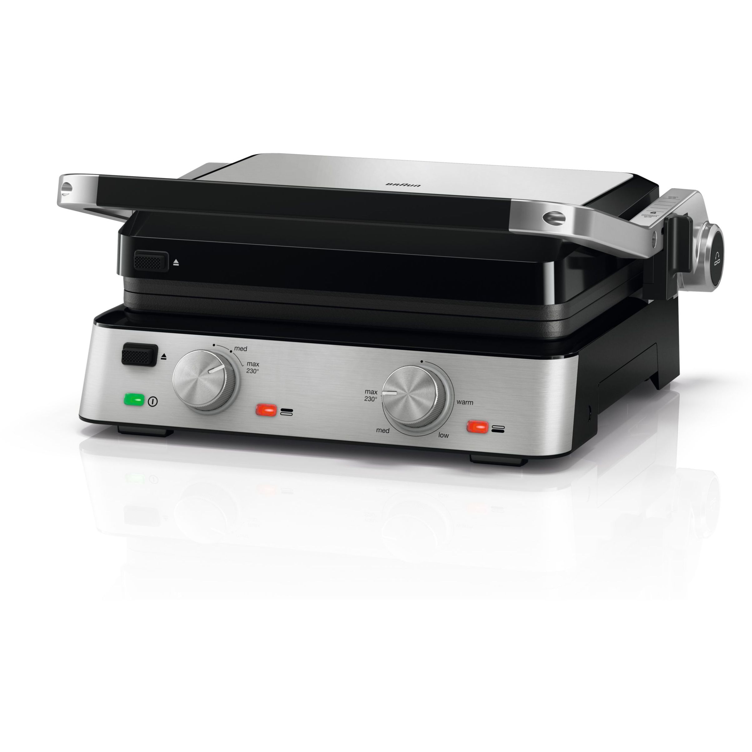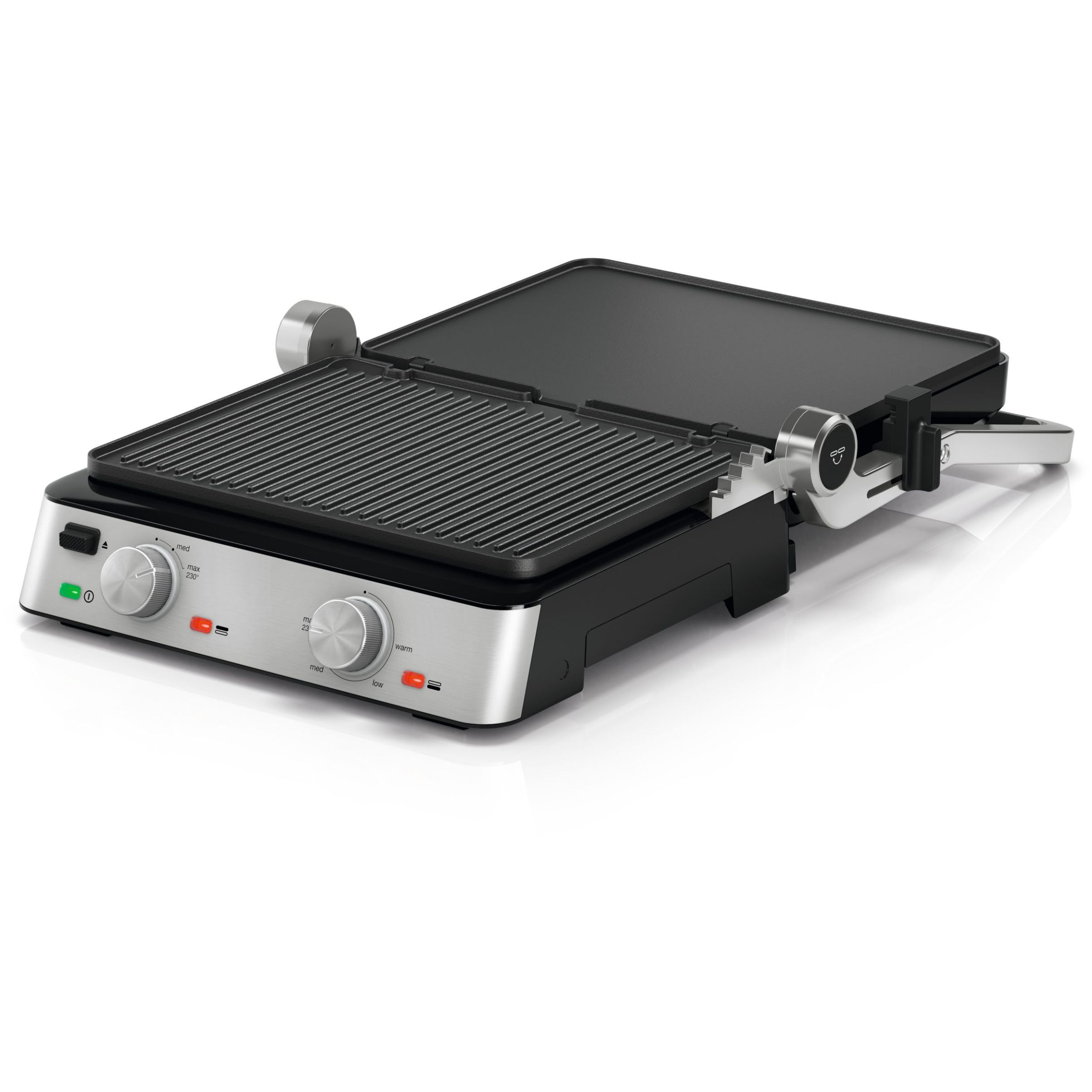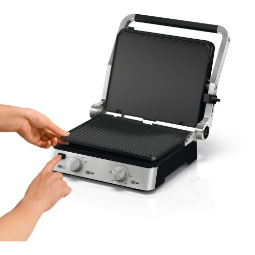 Versatilitate maximă datorită modului flexibil de poziționare a grătarului:deschis, tip cuptor sau în direct contact cu alimentele.