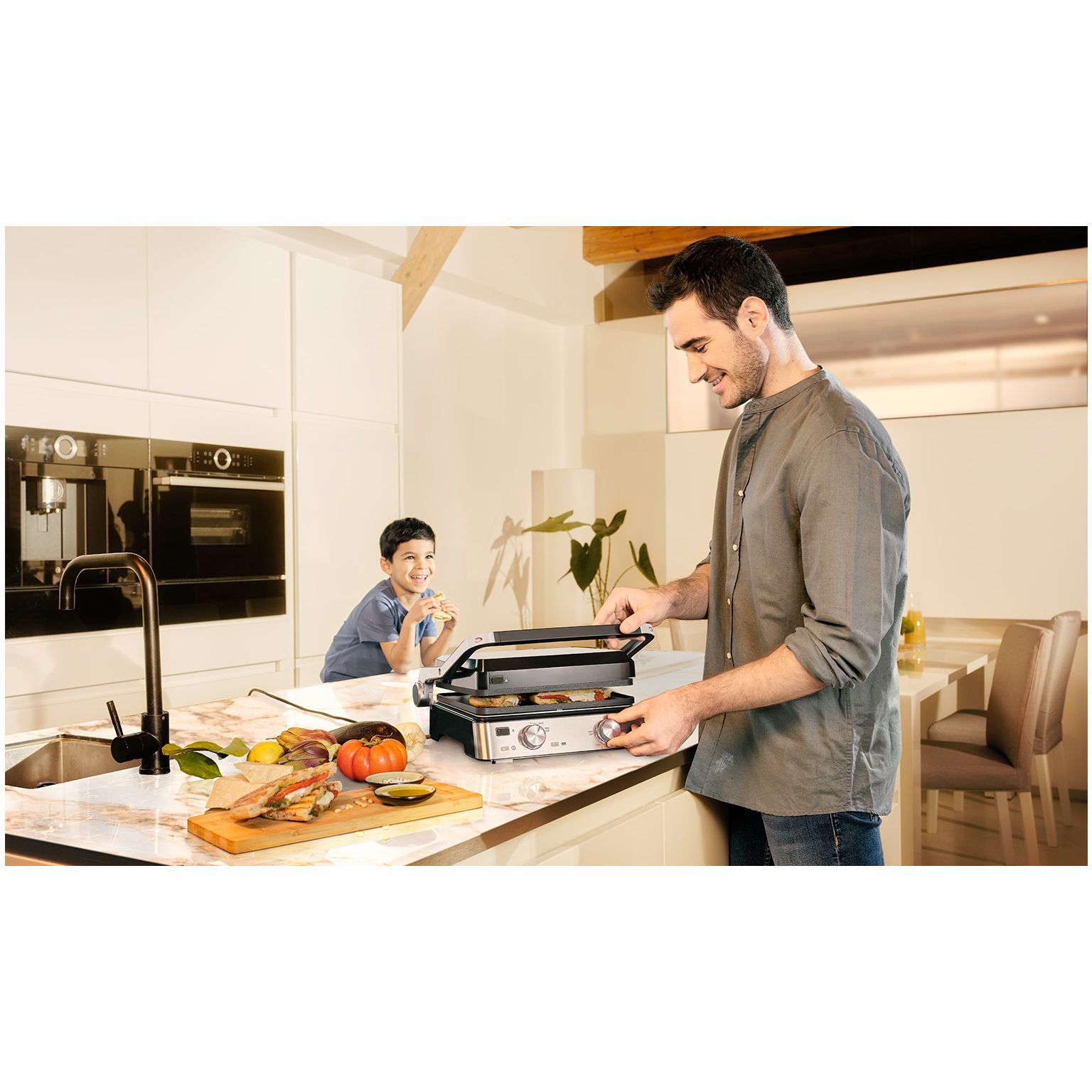 Versatilitate nelimitată. Datorită combinației inteligente dintre cele două tăvi diferite și cele trei moduri flexibile de gătit, te poți bucura de versatilitate nelimitată. Experimentează rezultate perfecte la grătar pentru micul dejun, prânz, cină și gustări.