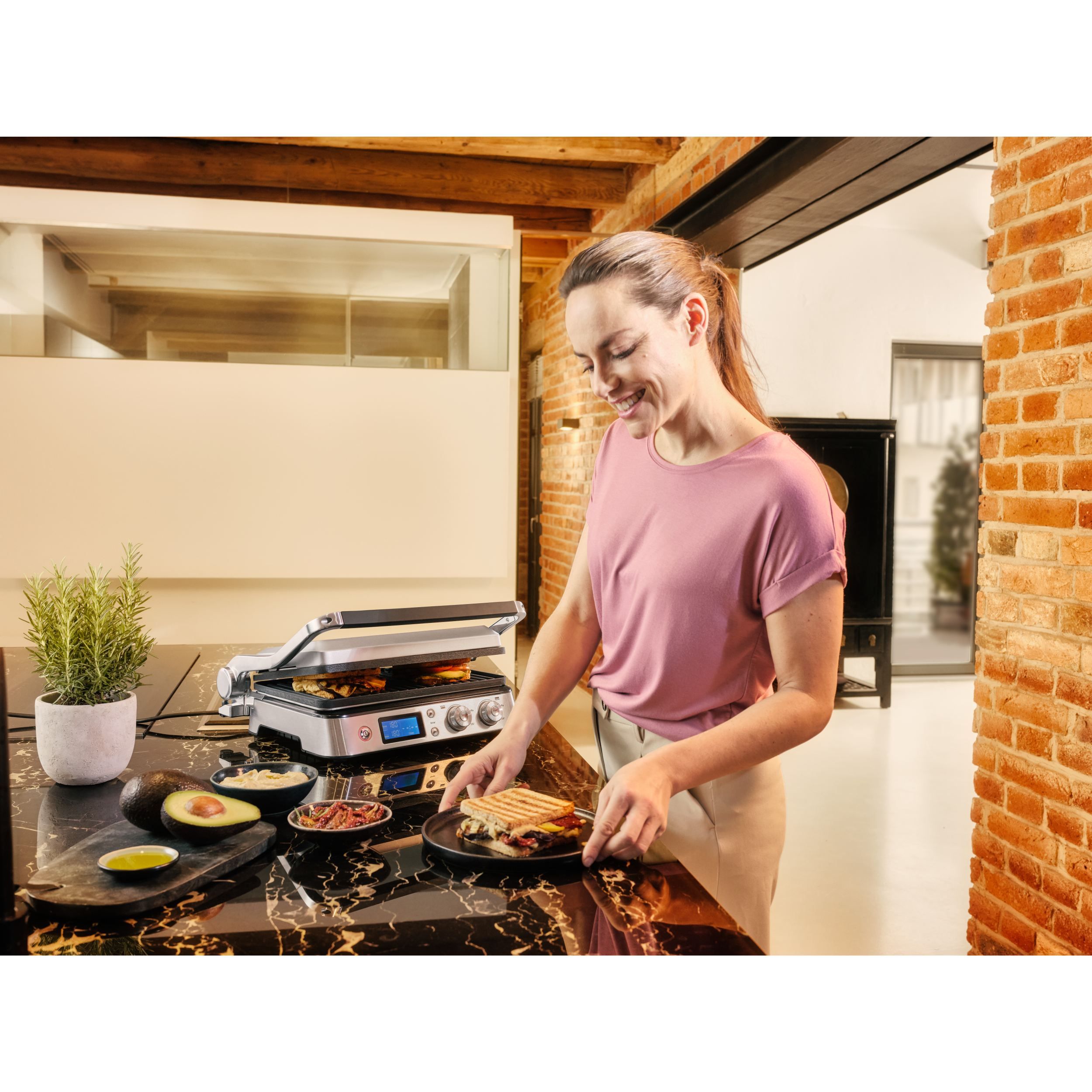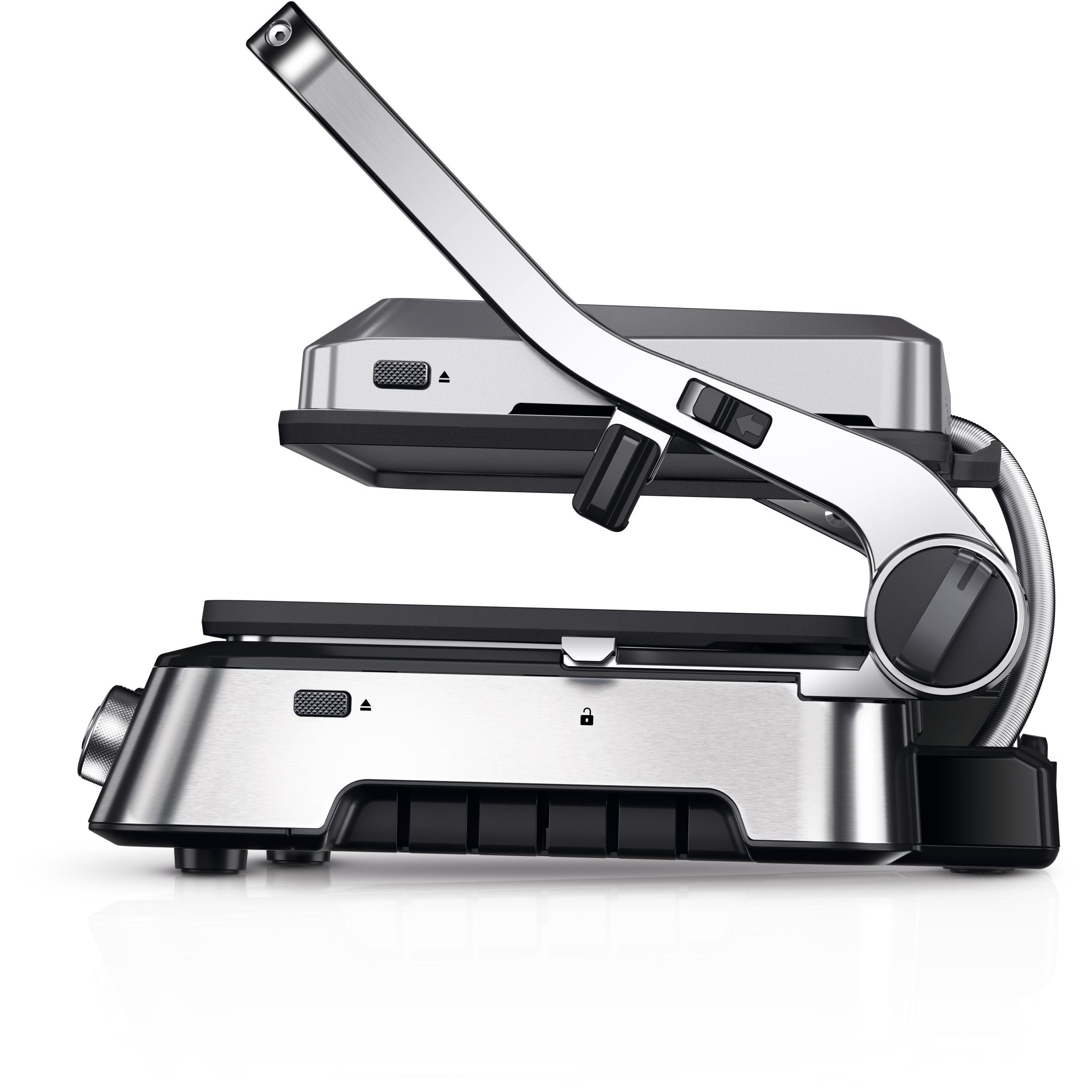 Versatilitate maximă datorită modului flexibil de poziționare a grătarului:deschis,tip cuptor sau în direct contact cu alimentele.