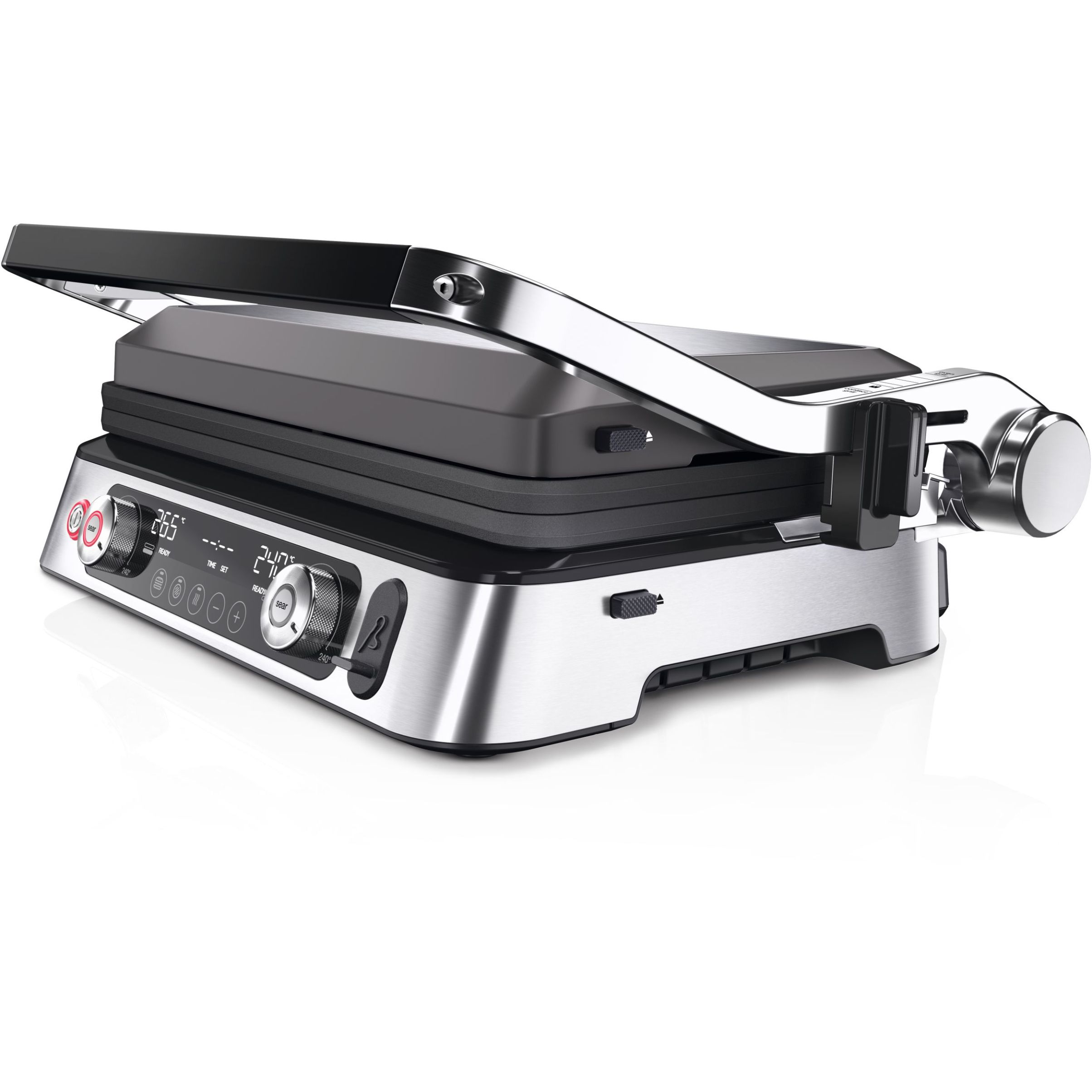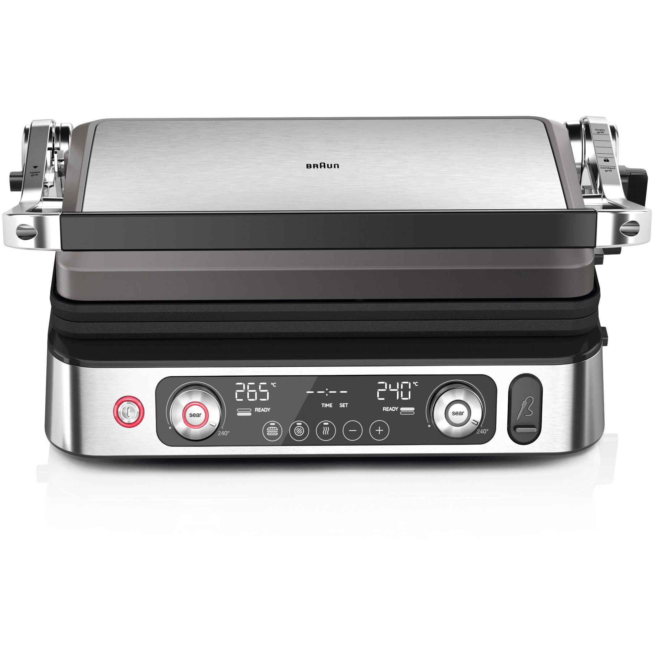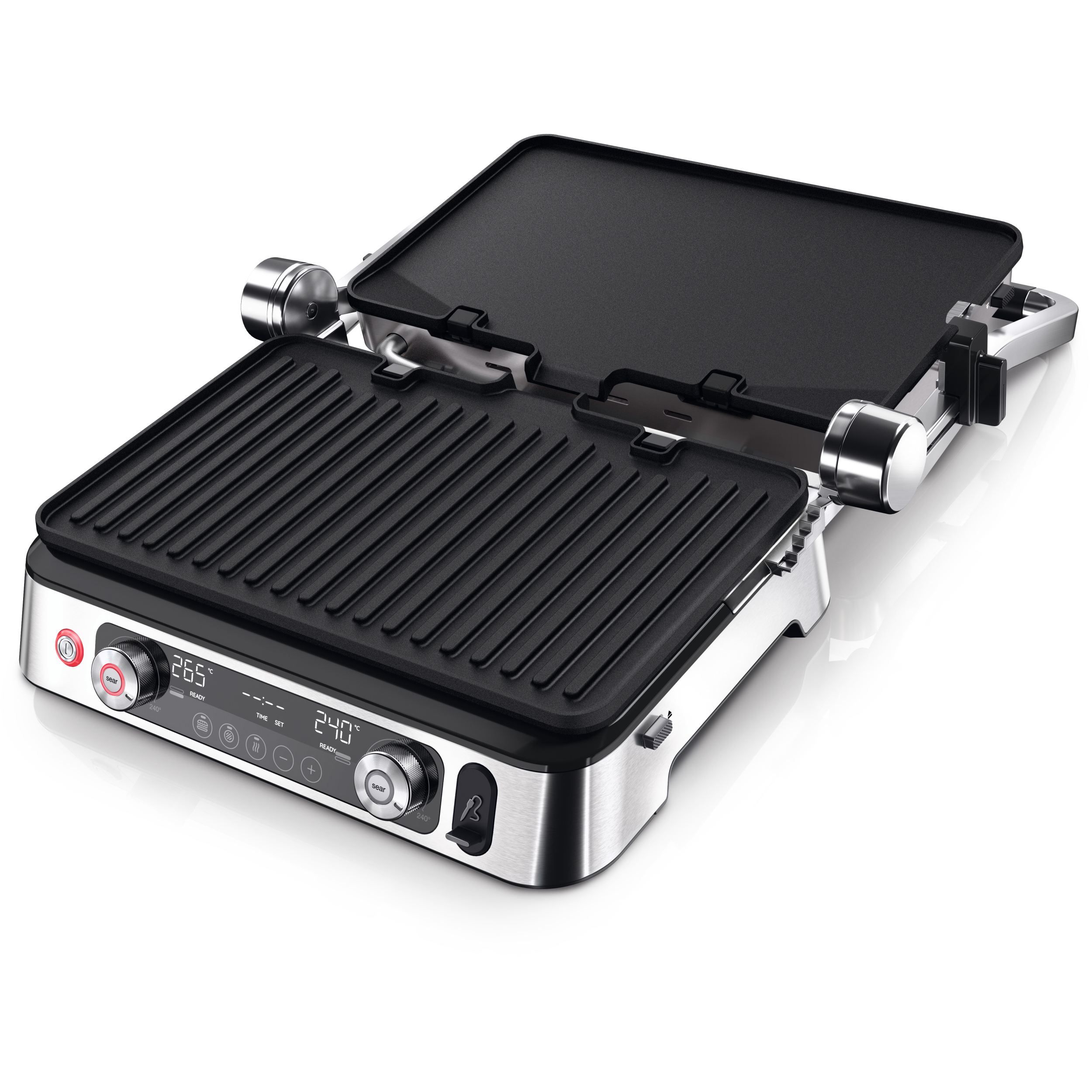Versatilitate maximă datorită modului flexibil de poziționare a grătarului:deschis,tip cuptor sau în direct contact cu alimentele.