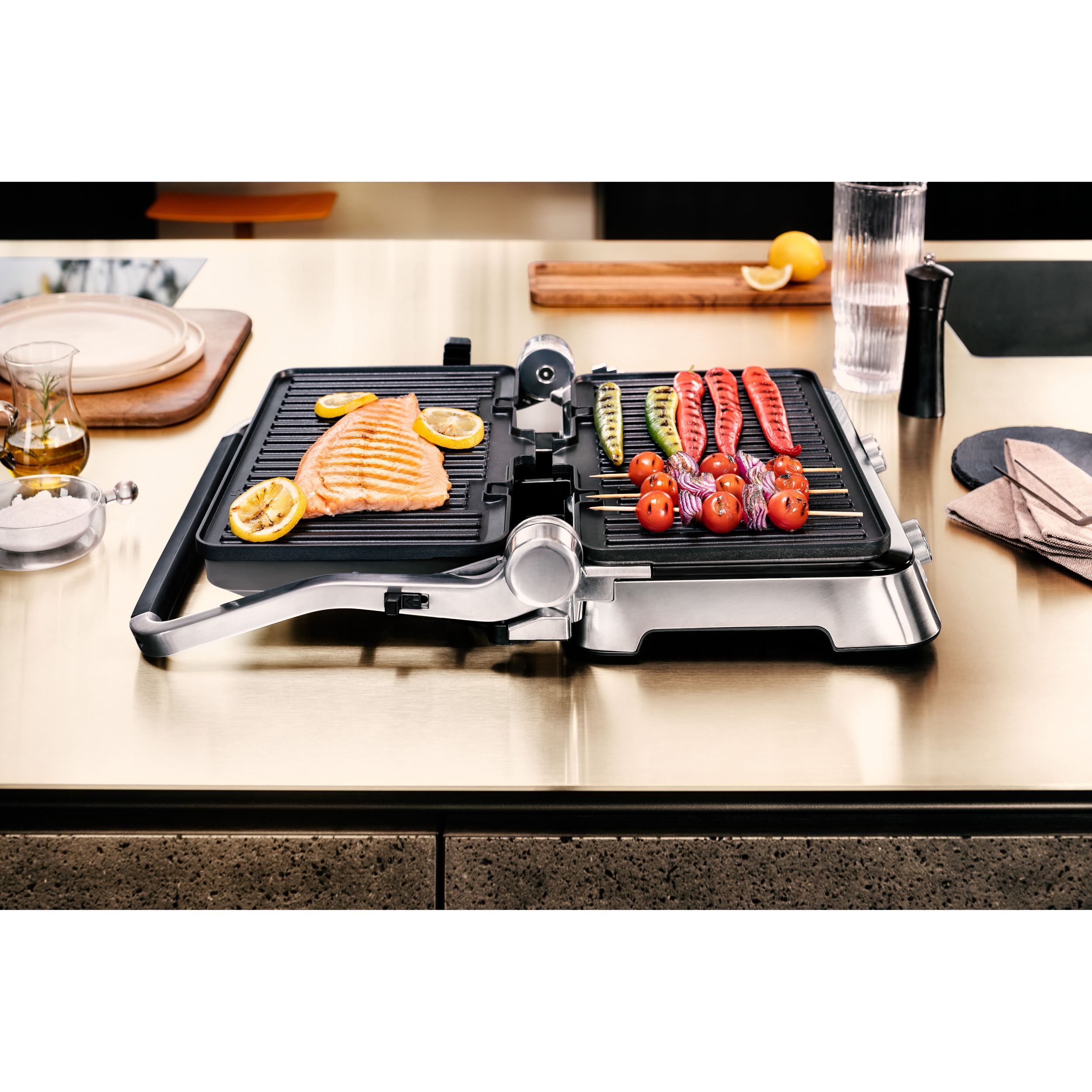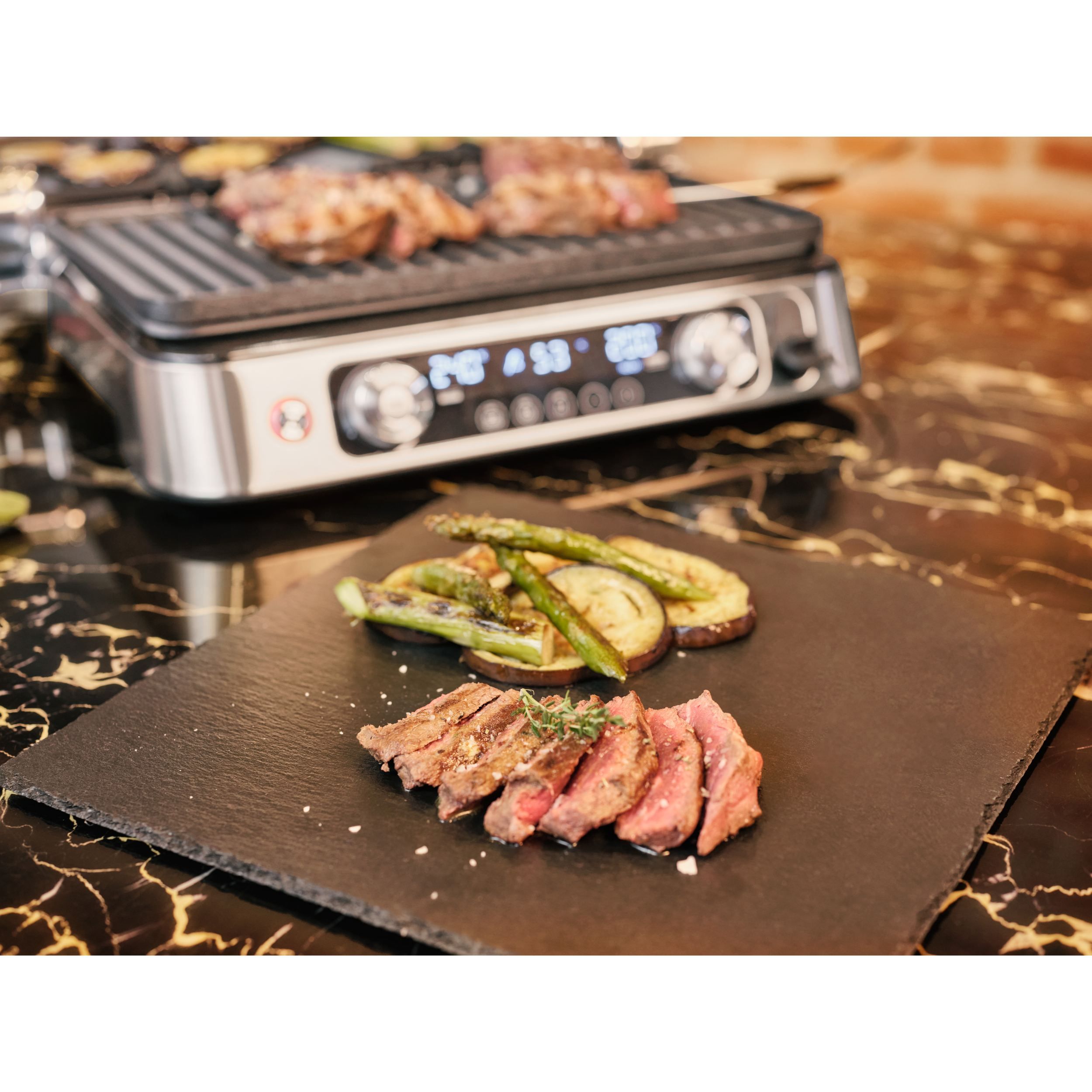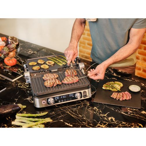 Datorită combinației inteligente a trei seturi de plăci diferite și a trei moduri flexibile de gătit,te vei bucura de versatilitate nelimitată. Experimentează rezultate perfecte la grătar pentru micul dejun, prânz, cină și gustări.