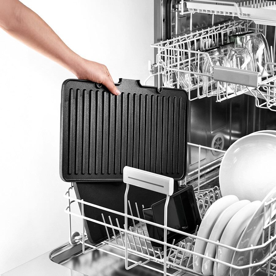 Plăcile anti-aderente, precum și tava de picurare pot fi spălate în mașina de spălat vase,ceea ce face curățarea simplă și plăcută.