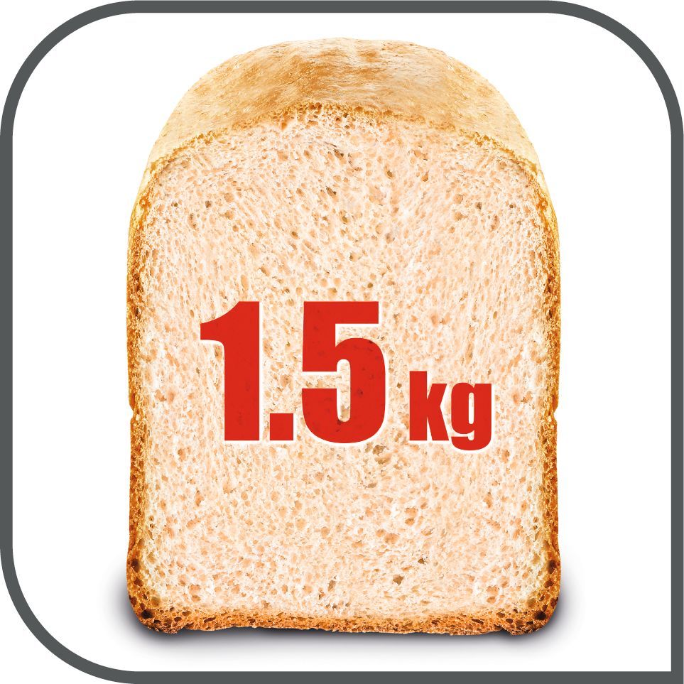 Datorită celor două lame cu direcție opusă de rotație mașina de pâine TEFAL are o frământare omogenă, iar în cuvă puteți prepara până la 1.5kg de pâine proaspătă.