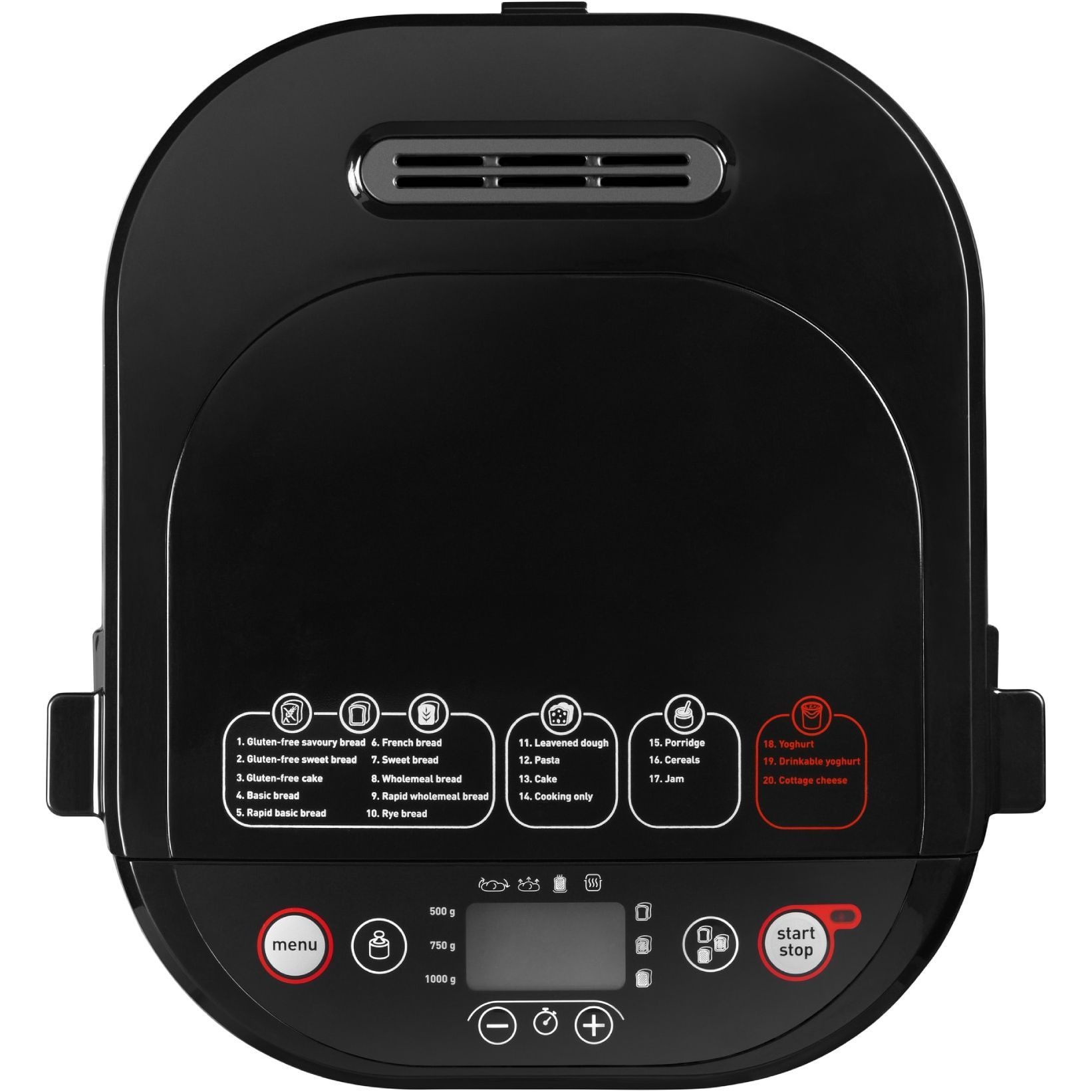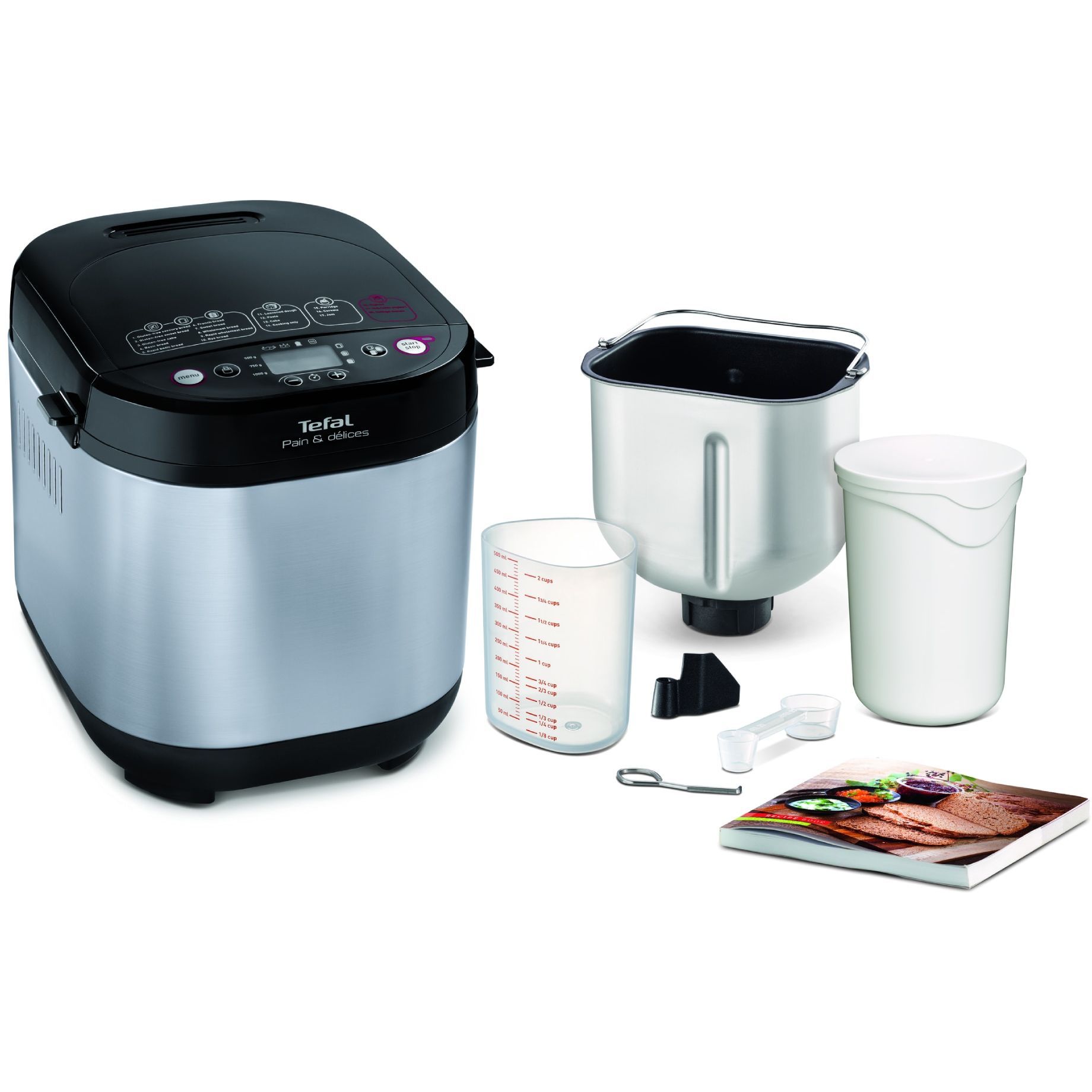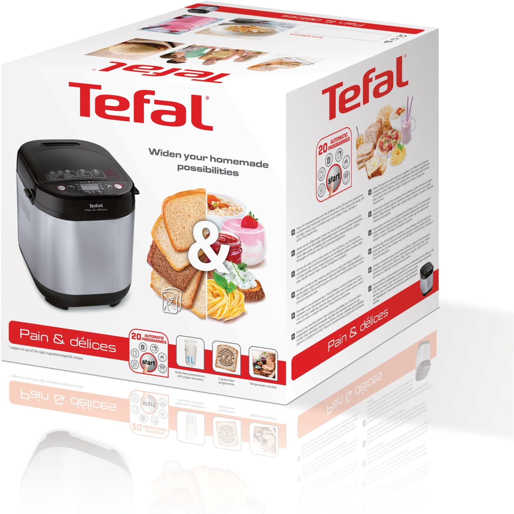 Mașina de pâine TEFAL Pain et Délices dispune de 20 programe: pâine fără gluten, pâine dulce fără gluten, prăjituri fără gluten, pâine normală, pâine rapidă, pâine franţuzească, pâine dulce, pâine integrală, pâine integrală rapidă, pâine de secară, dospit, paste prăjituri, copt, terci, cereale, gem, iaurt, iaurt de băut şi brânză cottage.