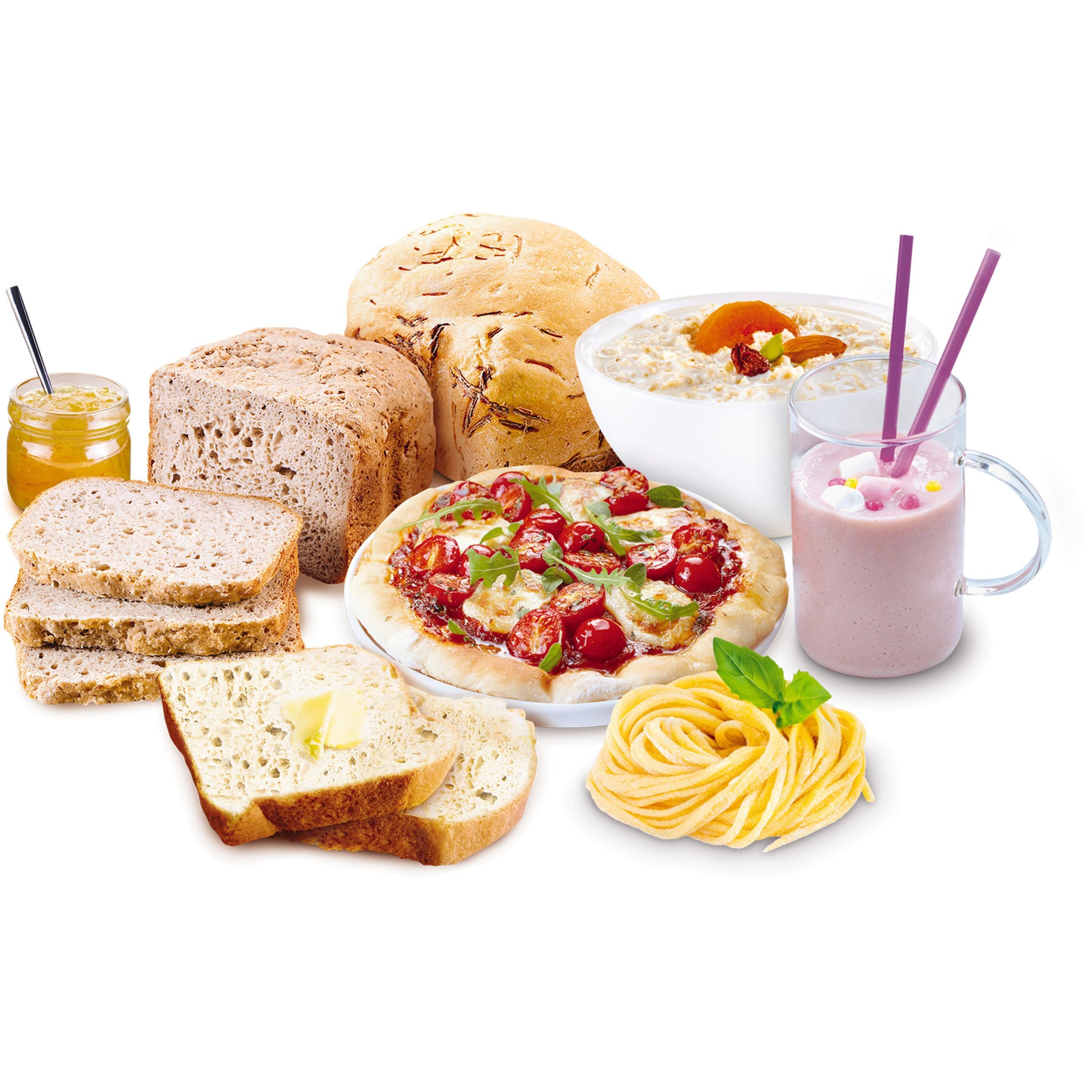 Bucurați-vă de reţete variate şi surprindeți-vă invitaţii de fiecare dată! Inspirați-vă din cartea de reţete inclusă în pachet! Aceasta conține rețete dedicate, de la pâine tradiţională la specialităţi de inspiraţie internaţională, preparate dietetice şi chiar reţete pentru lactate.