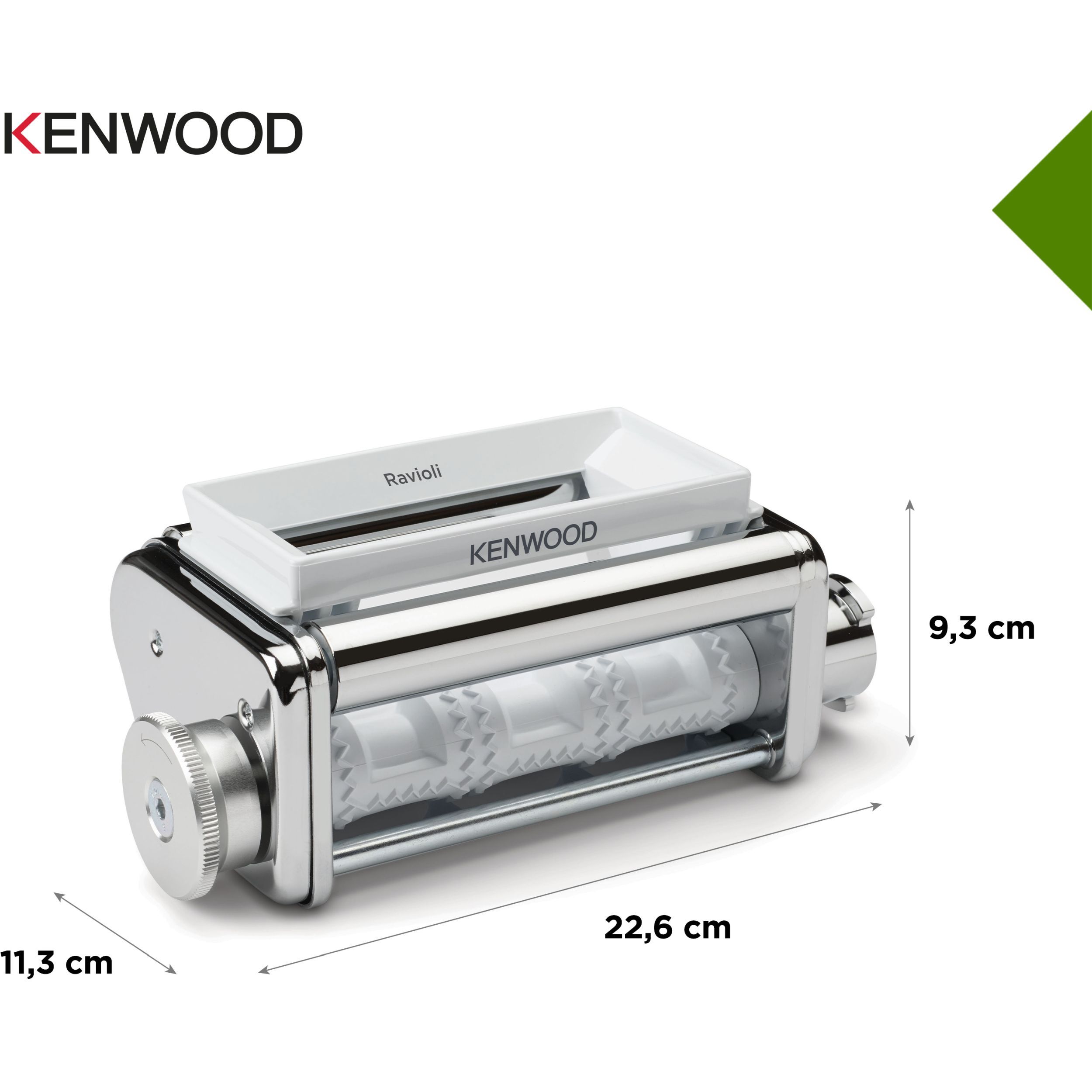 Crearea propriilor ravioli umplute delicioase, dulci sau sărate, este simplă cu accesoriul KENWOOD Ravioli Maker. Pur și simplu amestecați umpluturile alese, umpleți pâlnia și creați pachete de ravioli gustoase. Veți avea nevoie de accesoriul rolă lasagna pentru a rula mai întâi pastele până la grosimea dorită.
