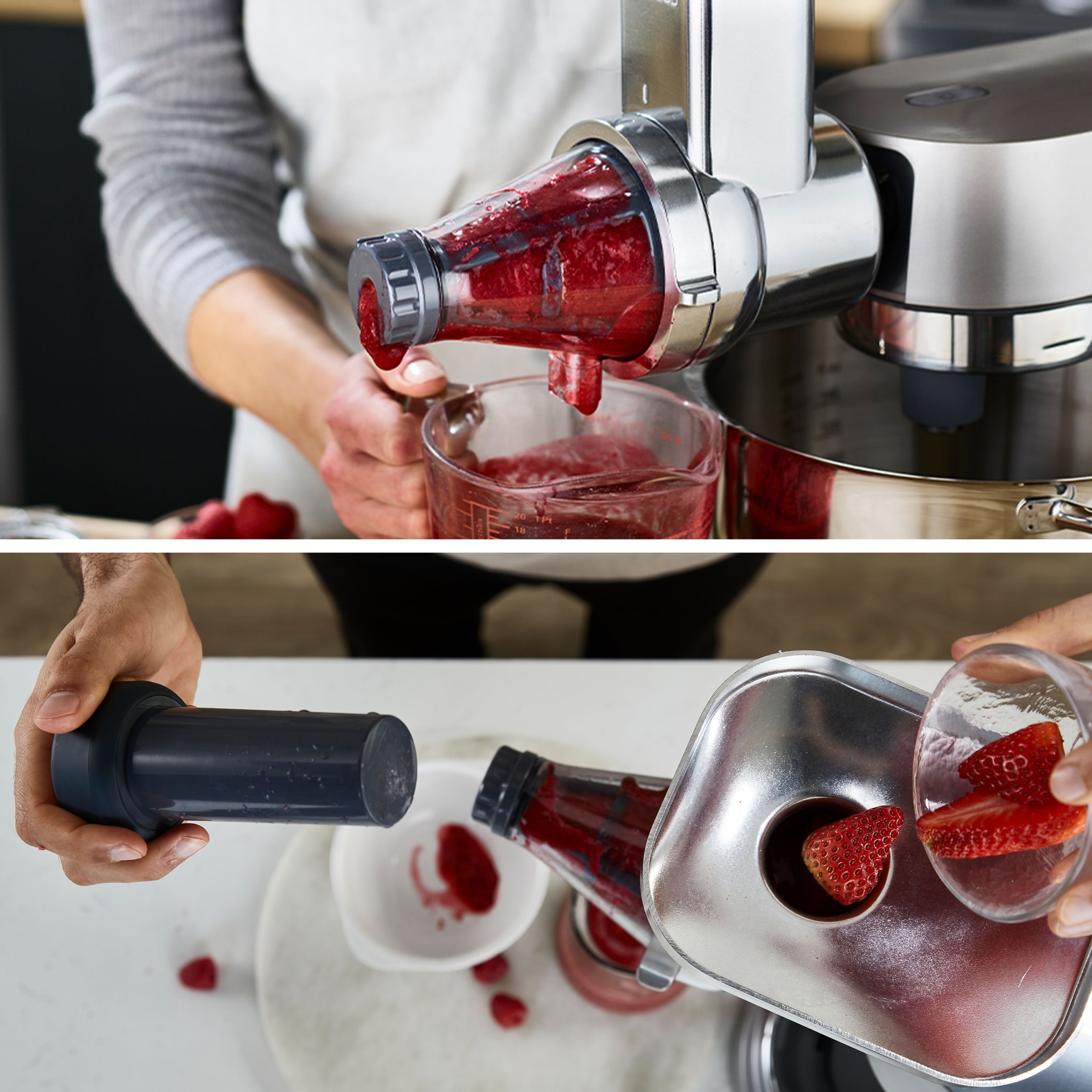Nu irosiți nicio picătură cu accesoriul pentru presarea fructelor. Conceput pentru a crea piureuri delicioase sau sucuri sănătoase, pline de arome.