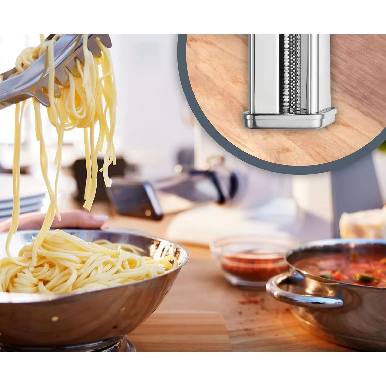 Trăiți o experiență autentică italiană în propria bucătărie cu ajutorul acesoriului pentruspaghetti. Savurați rețetele preferate așa cum vă plac cel mai mult și impresionați-vă oaspeții cu paste proaspete făcute acasă. Fie că sunt ouă organice, făină integrală sau alte tipuri de făină, pastele au cel mai bun gust din ingrediente de înaltă calitate. Dacă există intoleranțe, aveți mai mult control când alegeți ingredientele.