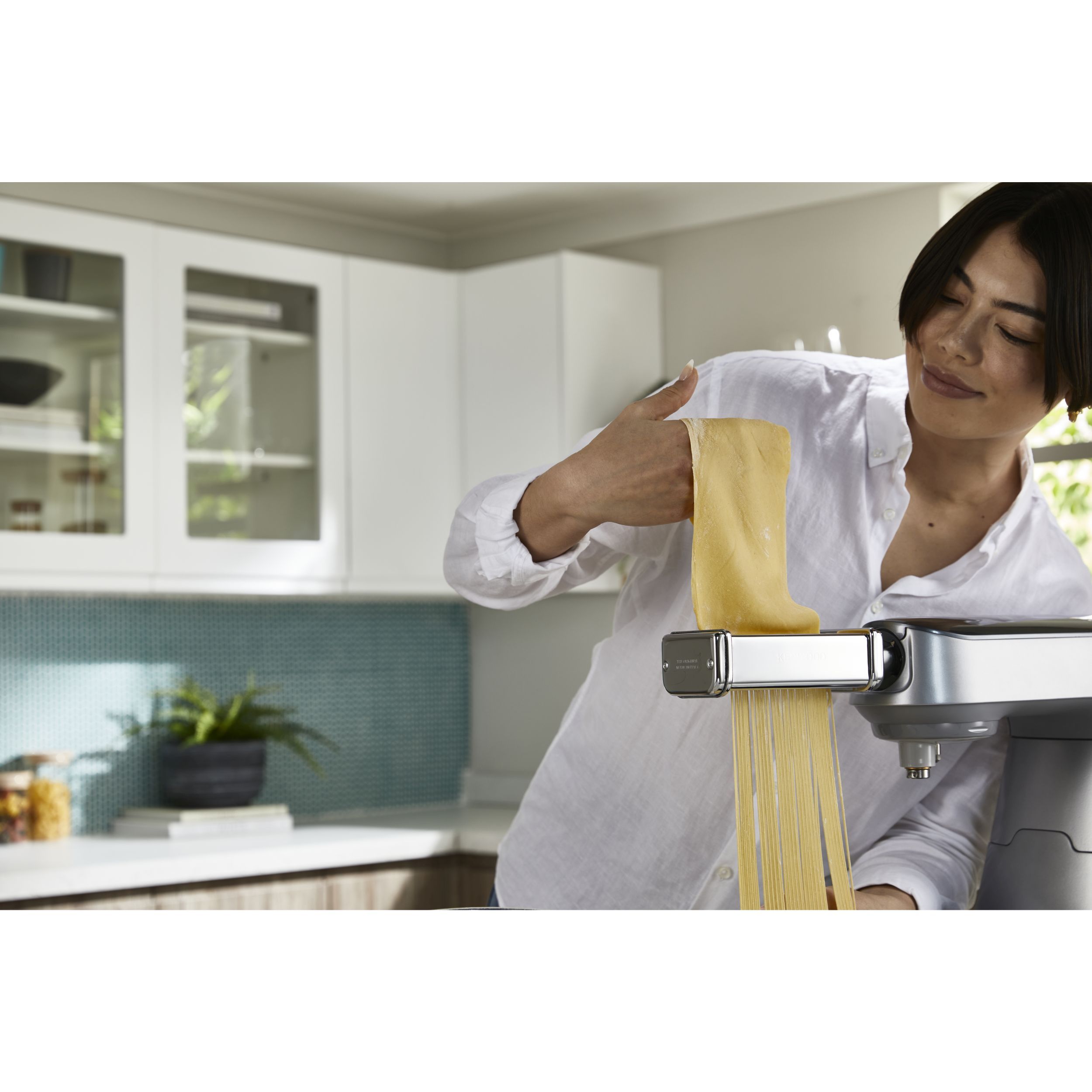 Accesoriul taie cu precizie pastele rulate pentru a crea Tagliolini cu lățime de 1,5mm. Veți avea nevoie de accesoriul rolă lasagna pentru a rula mai întâi pastele până la grosimea dorită.