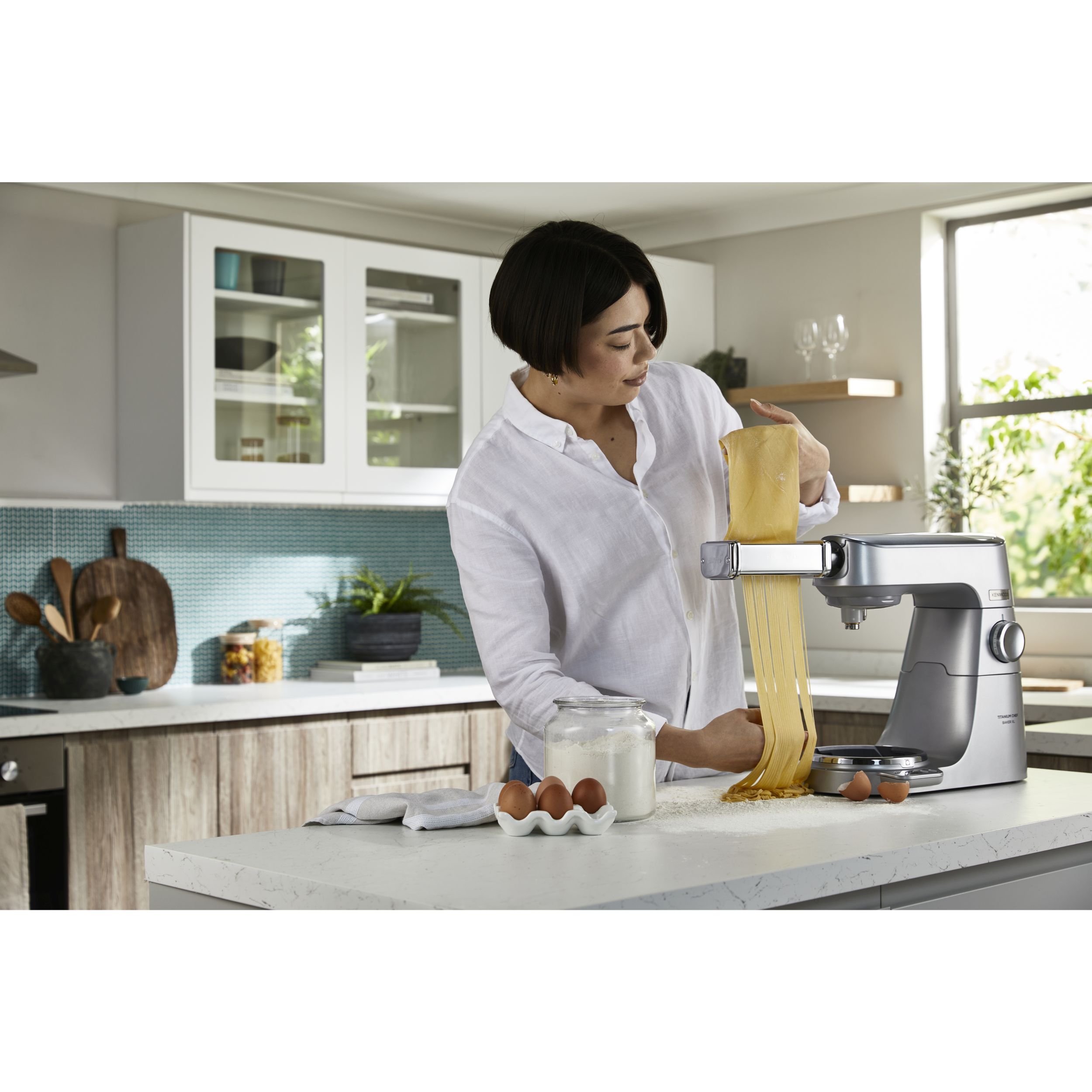 Nu vă faceți griji dacă aveți un Chef mai vechi, accesoriul pentru tăiat tagliolini este compatibil cu orificiul de viteză mică de pe aparatele de bucătărie Chef, Chef XL, kMix, Chef Major, Chef Sense, Chef XL Sense și Cooking Chef fabricate din 1976*!