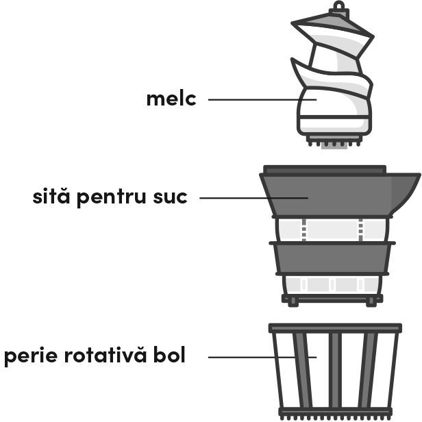 Ansamblu presare alimente nutribullet AS00007335, Melc+Sită+Perie rotativă, Pentru nutribullet Slow Juicer