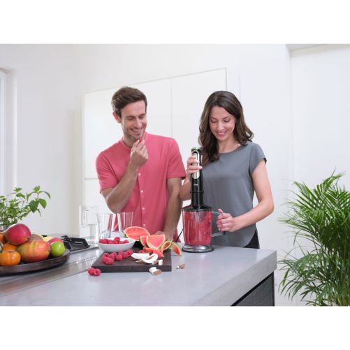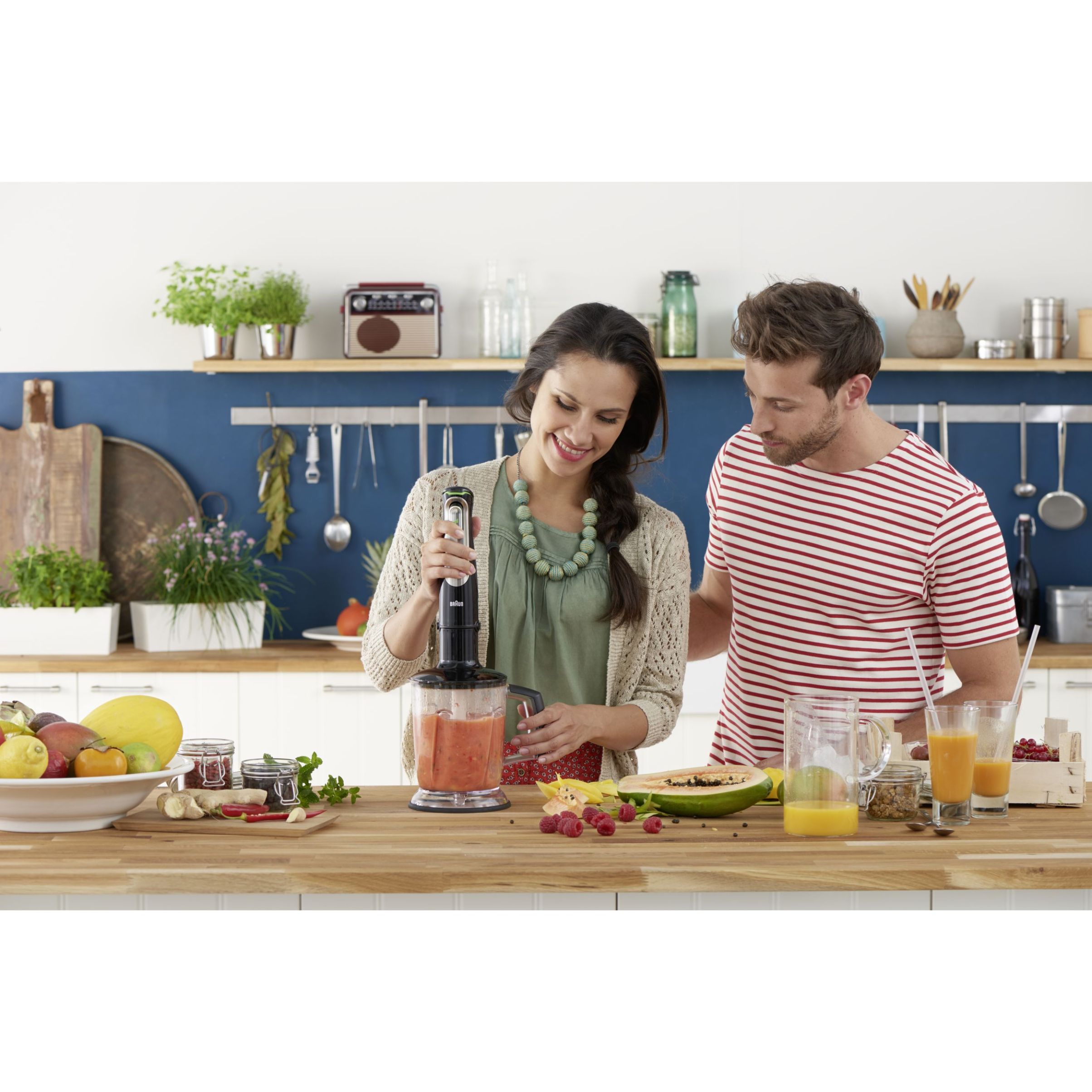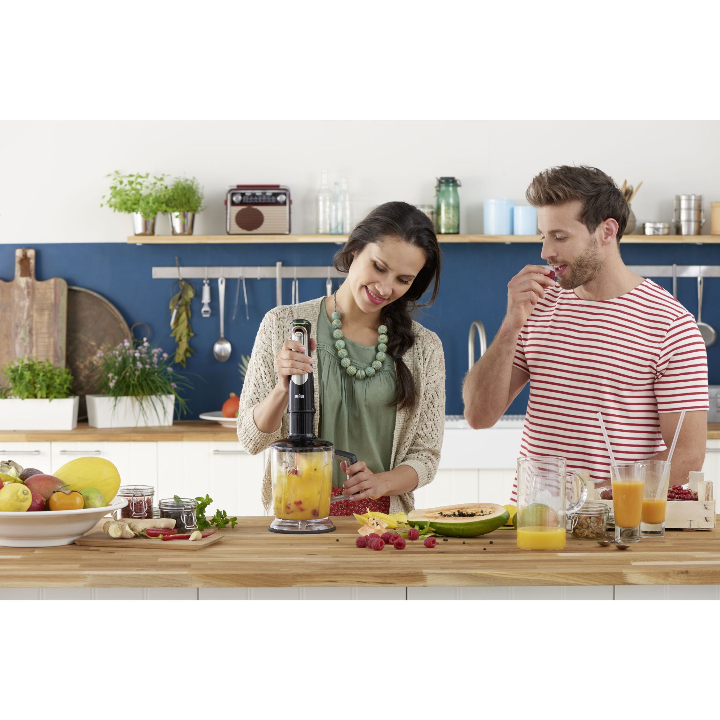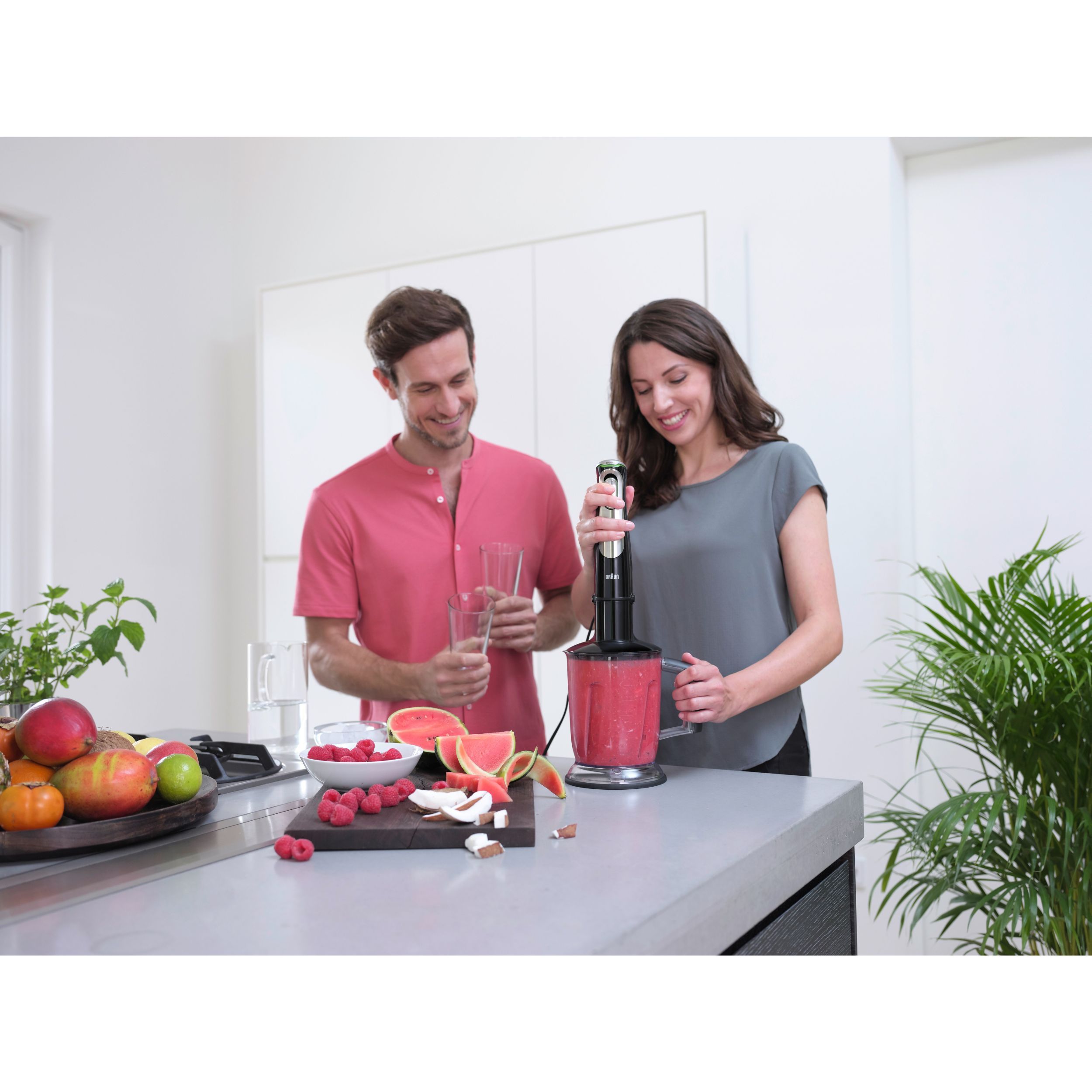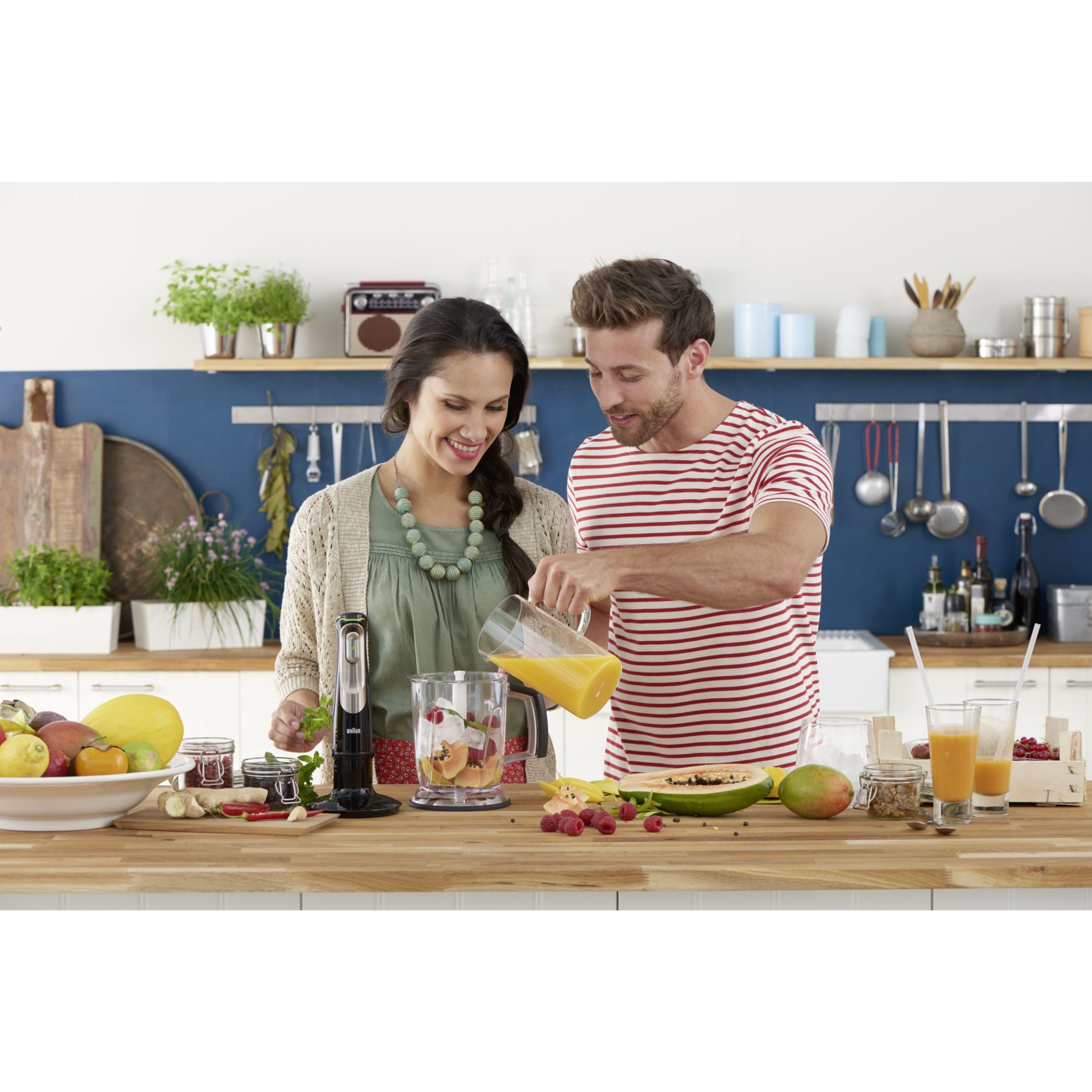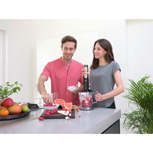 Blenderul de 1.25 litri de la BRAUN muncește cât doi: vă permite să dați frâu liber creativități, profitând la maximum de rezultatele oferite de blenderul dumneavoastră de mână. Pe lângă faptul că toacă rapid și ușor ingredientele, este perfect pentru prepararea de shake-uri sau băuturi, pentru amestecarea unui aluat ușor sau chiar pentru zdrobirea simplă a cuburilor de gheață.