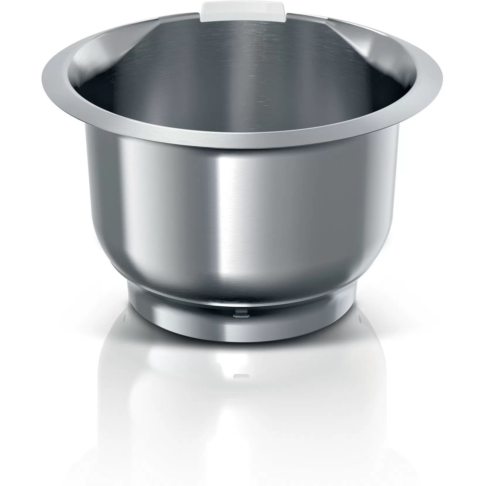 Bolul are un design impecabil, din oțel inoxidabil. Capacitatea este mare, pentru a face față multor sarcini. Dacă doriți, puteți să achiziționați separat un splashguard* pentru evitarea irosirii de materiale prețioase în timpul amestecării sau pentru o umplere mai sigură.