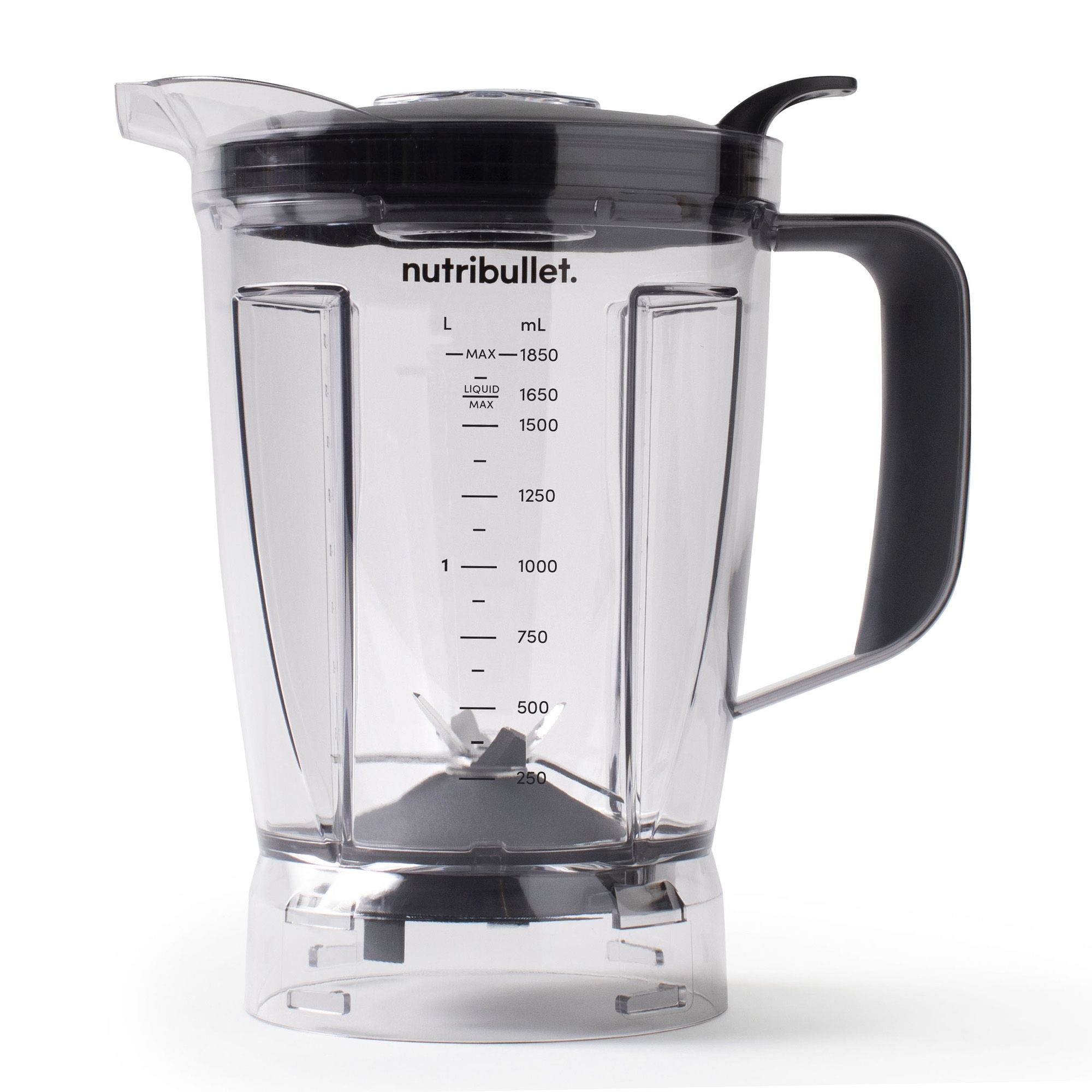 Carafa rezistentă la căldură de 1,8 litri (64 oz) a blenderului nutribullet este ideală pentru toate preparatele. Dispune de un capac ventilat cu o parte detașabilă care face posibilă împingerea treptată a ingredientelor în timpul procesului de amestecare și un dispozitiv de împingere a ingredientelor către lamă. Compatibil cu nutribullet Blender și nutribullet Blender Combo.