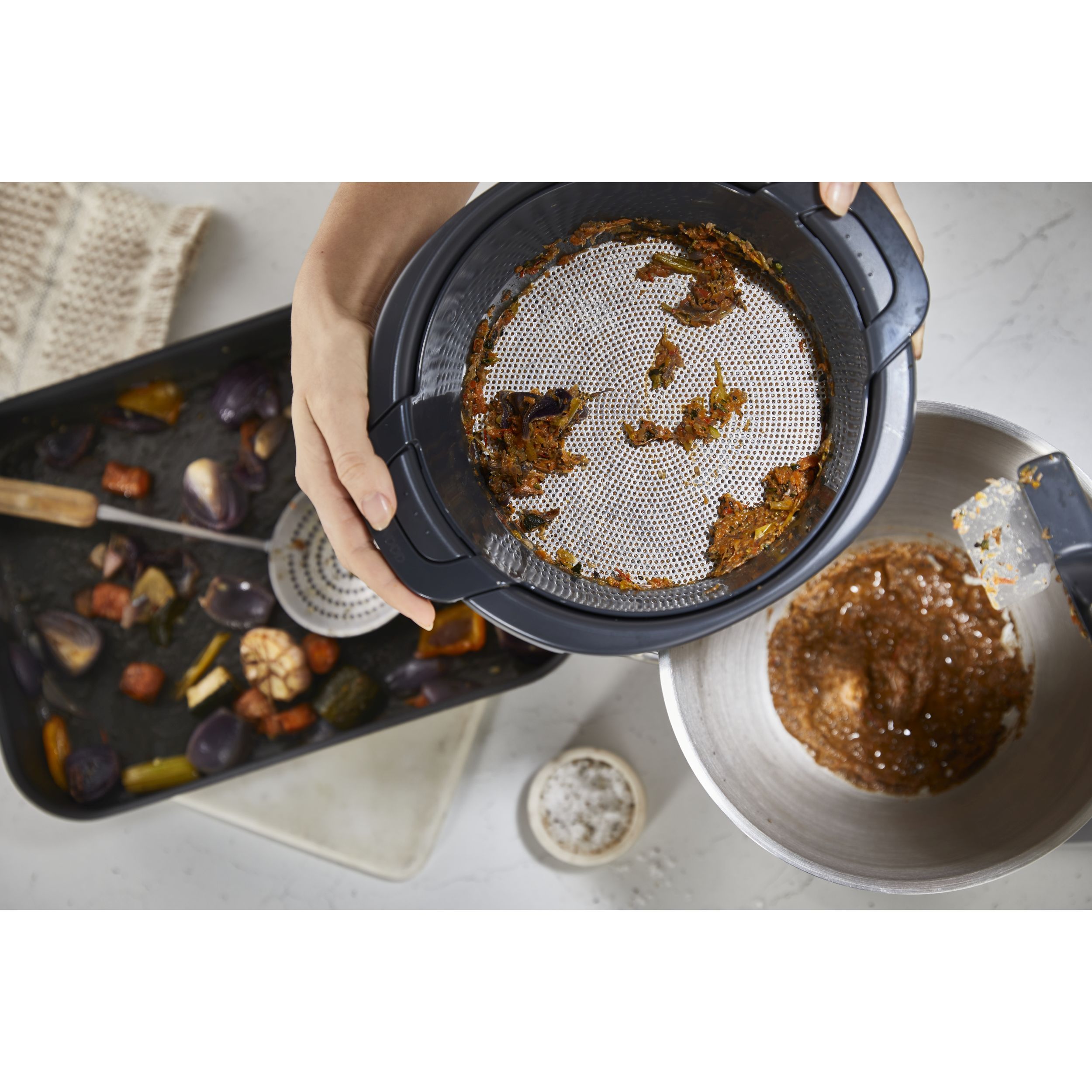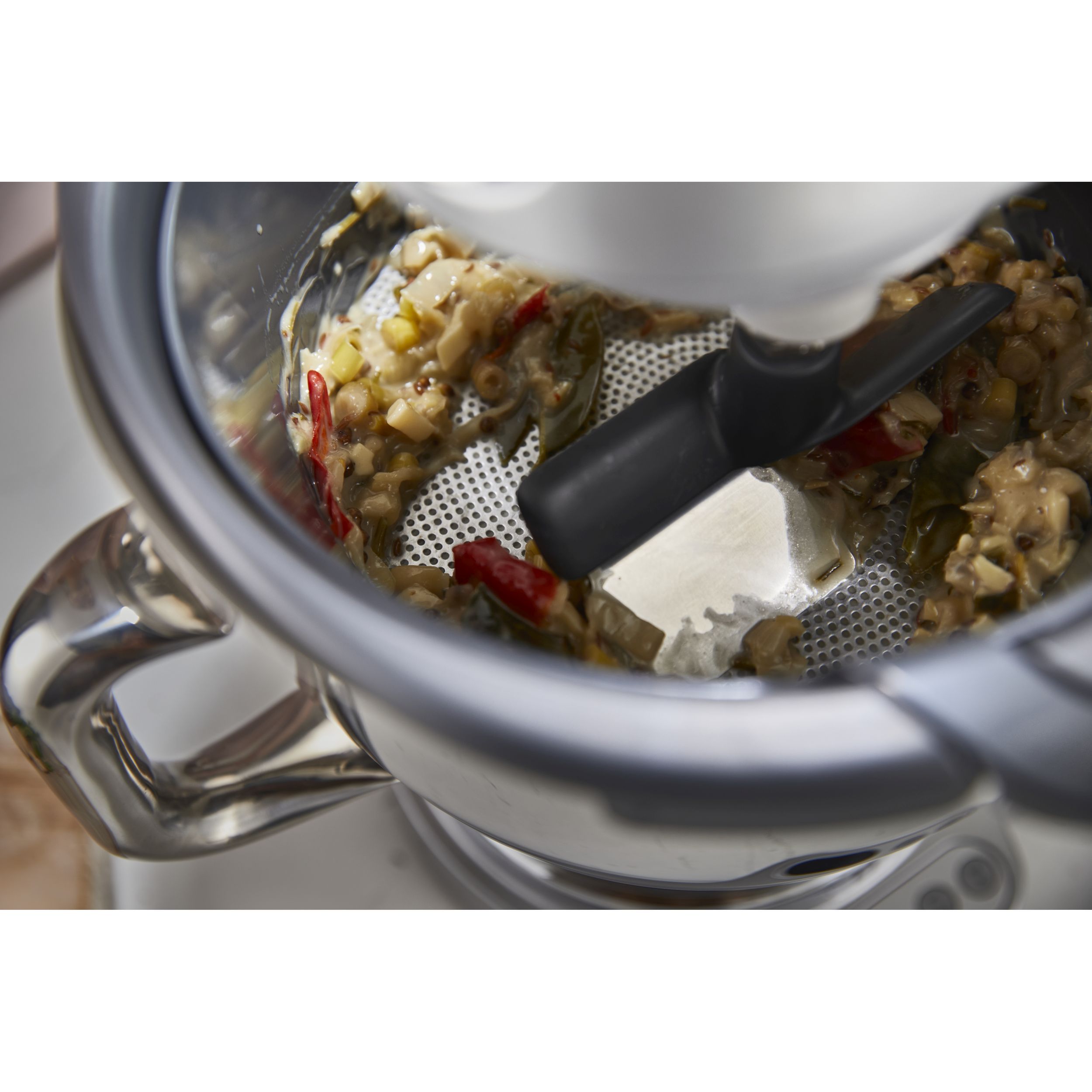 Permiteți motorului robotului dumneavoastră să suporte efortul de cernere sau pasare. Încărcați ingredientele gătite în vas, puneți paleta și porniți-vă robotul. Cernerea automată pasează și strecoară ingredientele prin sită, lăsând în bol cea mai fină passata, cele mai fine gemuri sau sosuri pentru paste.