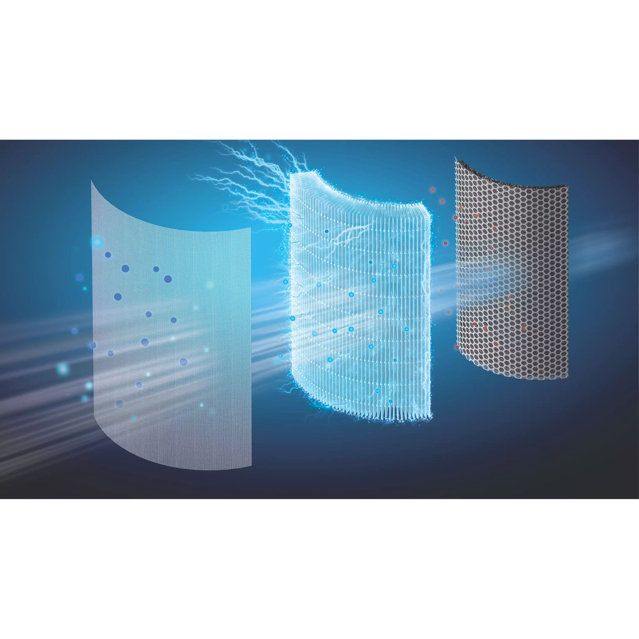 O filtrare în 3 straturi cu HEPA NanoProtect, carbon activ şi prefiltru asigură protecţia împotriva bacteriilor, polenului, prafului, PM2.5, părului de animale şi gazelor. Tehnologia HEPA NanoProtect nu doar captează substanţele poluante, ci foloseşte şi o sarcină electrostatică specială pentru a le atrage, permiţându-i să purifice aerul mai repede decât un filtru HEPA H13 care este utilizat medical.