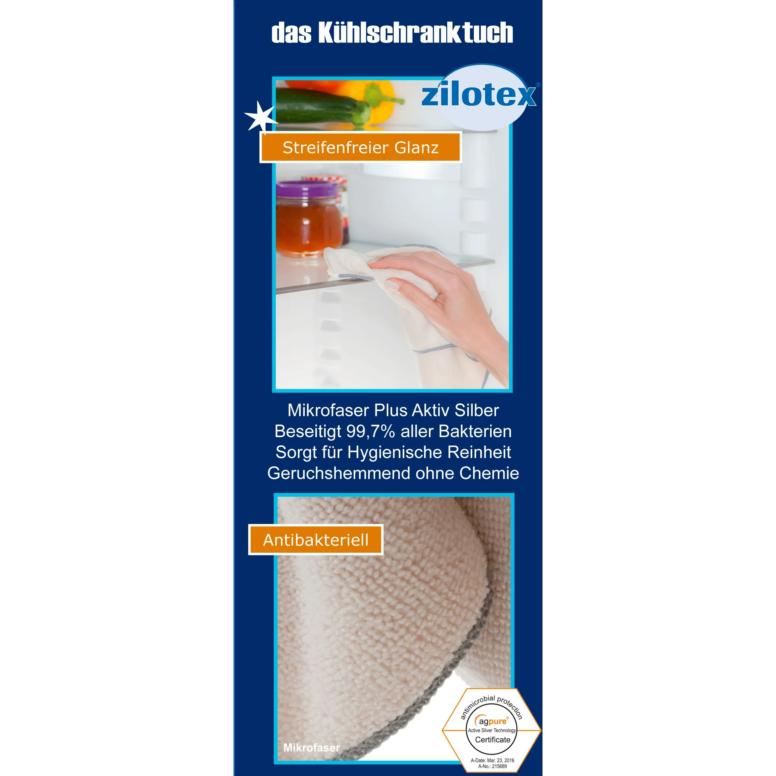 Lavetă curățare microfibră Hansi-Siebert zilotex 17004322, Pentru frigidere, 30x30cm, Efect antibacterian, Distruge până la 99.97% din bacterii, Spălare maximum 60°C