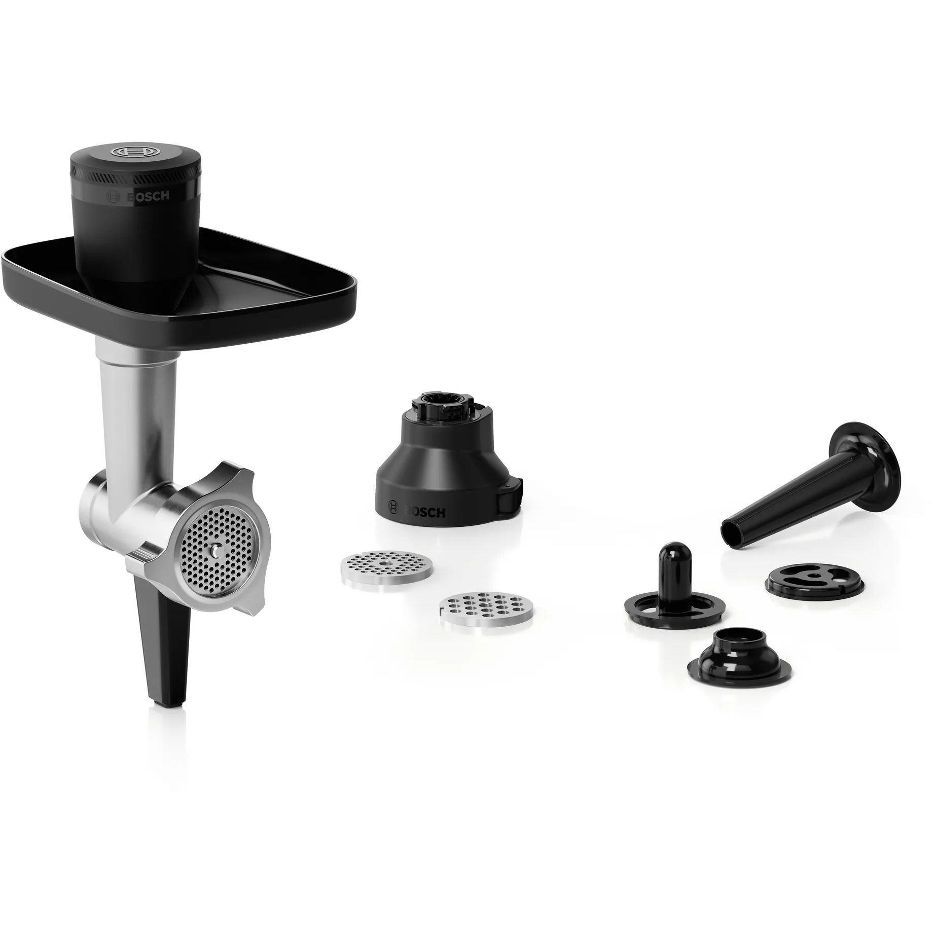 Trei discuri perforate diferite cu dimensiuni ale orificiilor de 3, 5 și 8mm și un accesoriu pentru prepararea cârnaților permit flexibilitate maximă în rețetele dumneavoastră. Cu celelalte atașamentele incluse, puteți prepara falafel și kebbe delicioase.