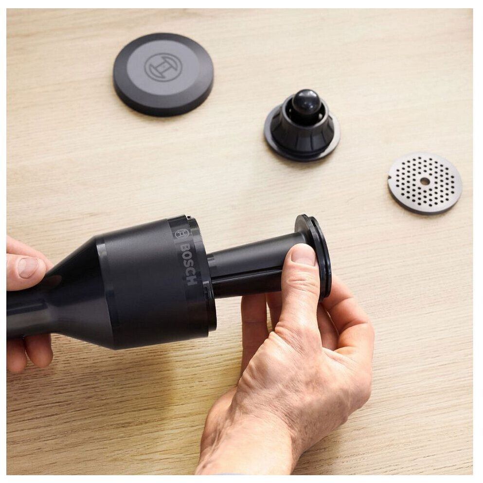Setul Hunting Adventure pentru robotul de bucătărie Seria 6 deschide noi posibilități în prepararea rețetelor dumneavoastră. Fie că este carne, pește sau legume, mașina de tocat carne prelucrează toate ingredientele. Cu ajutorul atașamentelor versatile vă puteți impresiona oaspeții pregătind cu ușurință amestecuri de carne tocată, plăcinte, cârnați de casă, tartar proaspăt sau falafel, puteți crea terine de toate felurile și kebbe după propriul gust.