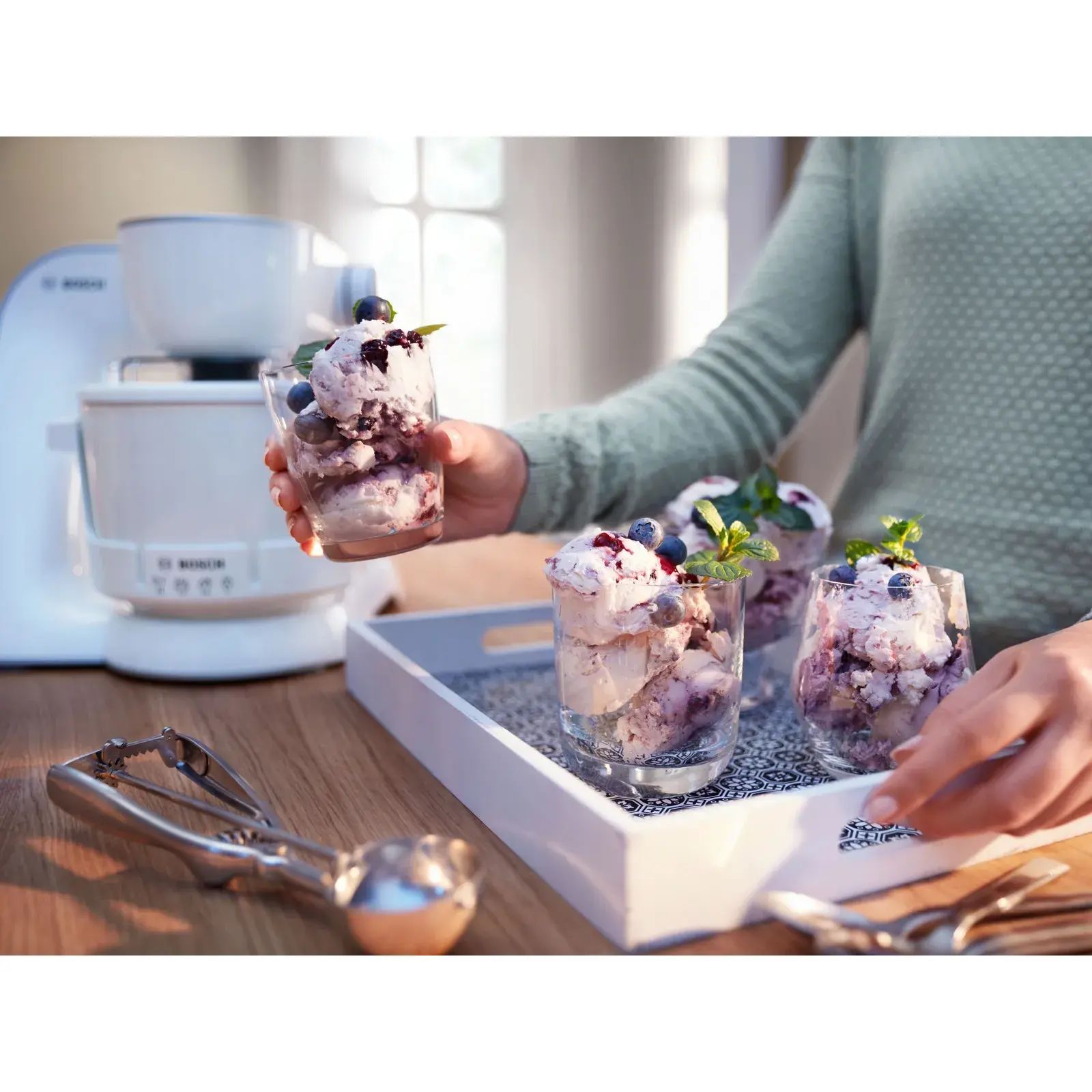 Acum ai ajutorul perfect pentru înghețată de casă, sorbet sau iaurt. Cu ajutorul acestui accesoriu poți prepara până la 550 ml de înghețată sau sorbet. Savurează o înghețată delicioasă, preparată cu ingrediente proaspete alese de tine și cu cantitatea de zahăr potrivită gusturilor tale. În plus, poți curăța acest accesoriu sub jet de apă după ce l-ai folosit.