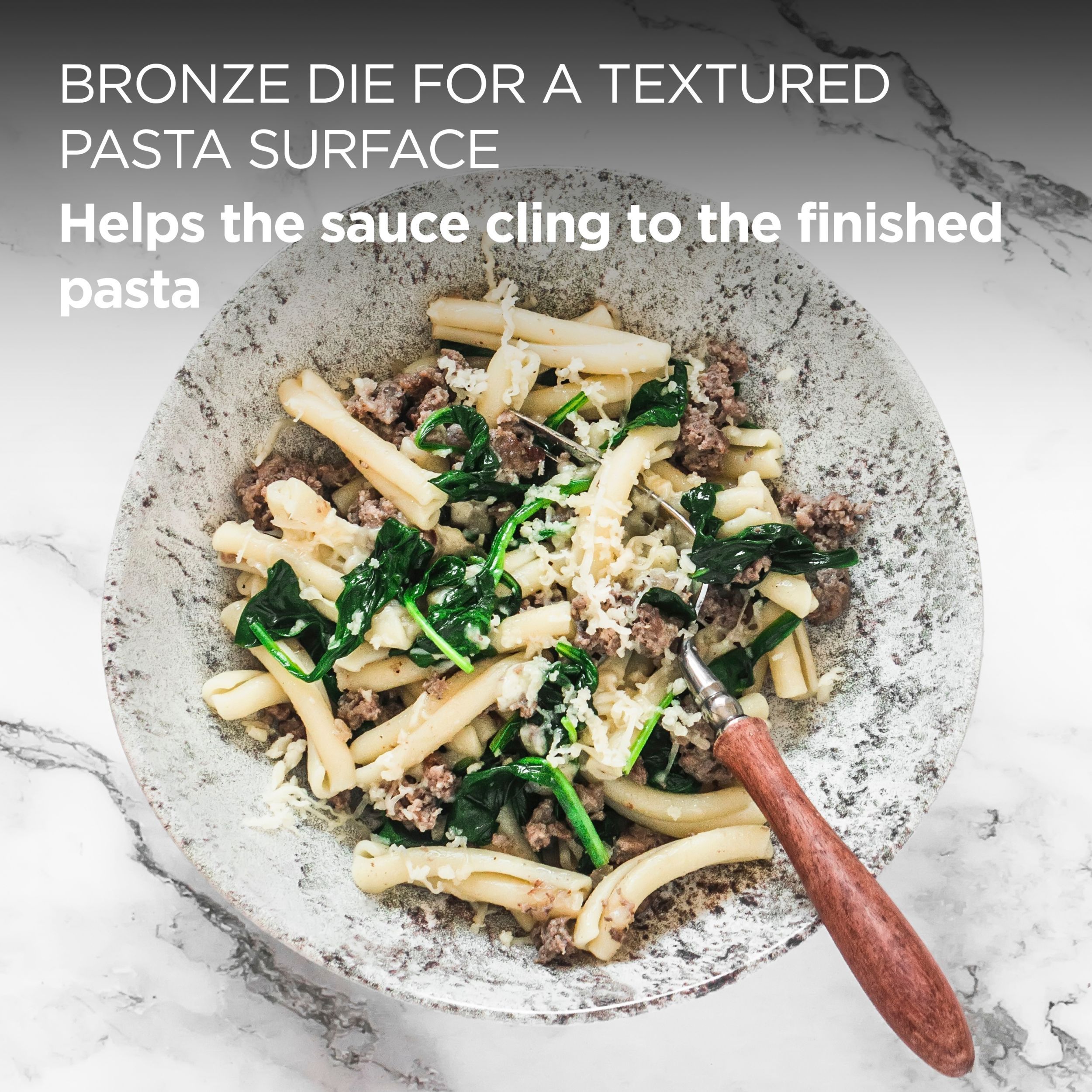 Matrițele de bronz de calitate folosite pentru modelarea pastelor oferă o suprafață texturată formelor dumneavoastră, astfel încât sosurile se omogenizează mai bine pentru o aromă italiană autentică.