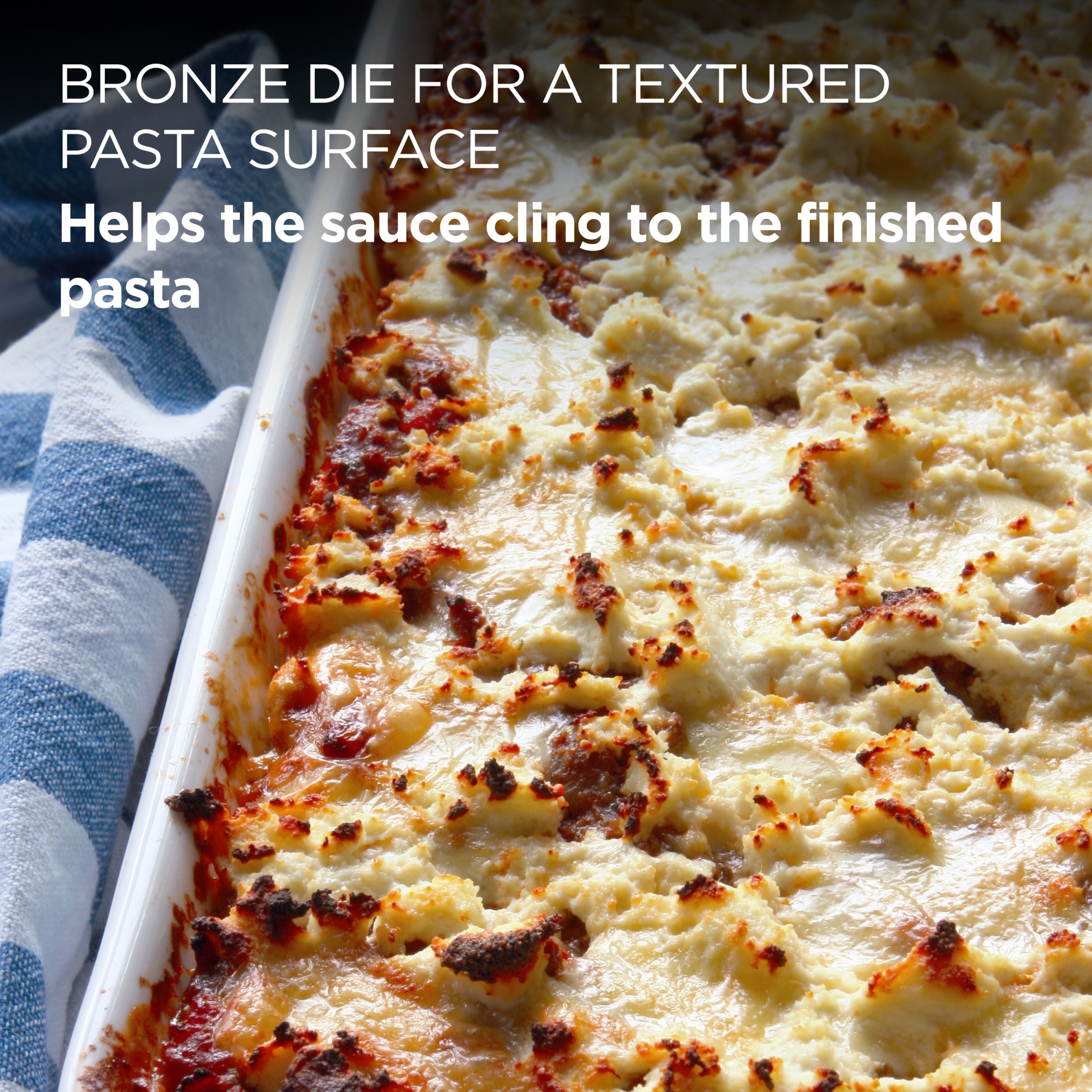 Matrițele de bronz de calitate folosite pentru modelarea pastelor oferă o suprafață texturată formelor dumneavoastră, astfel încât sosurile se omogenizează mai bine pentru o aromă italiană autentică.