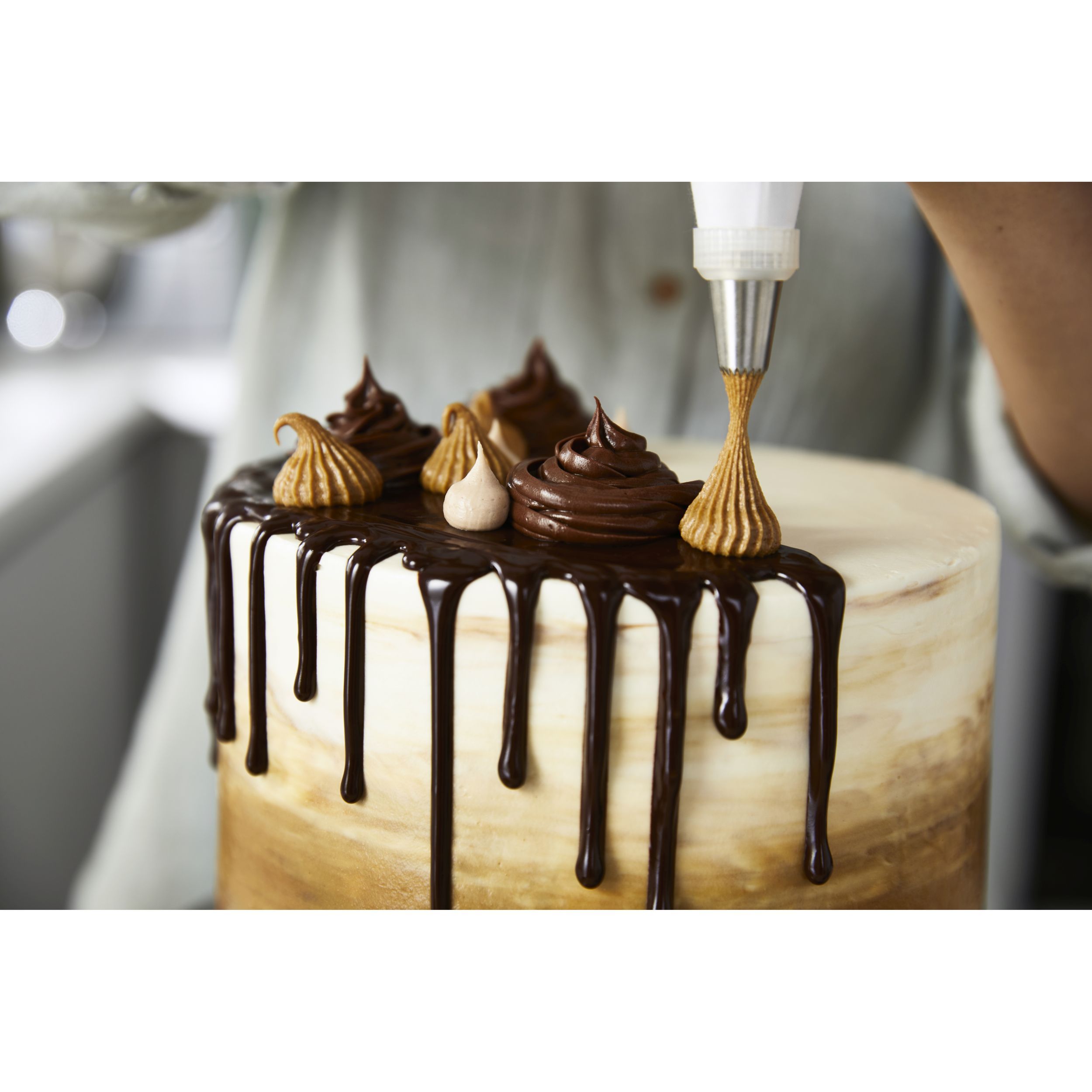 Având un adevărat arsenal de 14 duze diverse, acest set de poș (ce include și pungă reutilizabilă) vine în ajutorul oricui dispus să-și cizeleze aceste îndemânări pentru a obține la final acel finisaj mult dorit.
