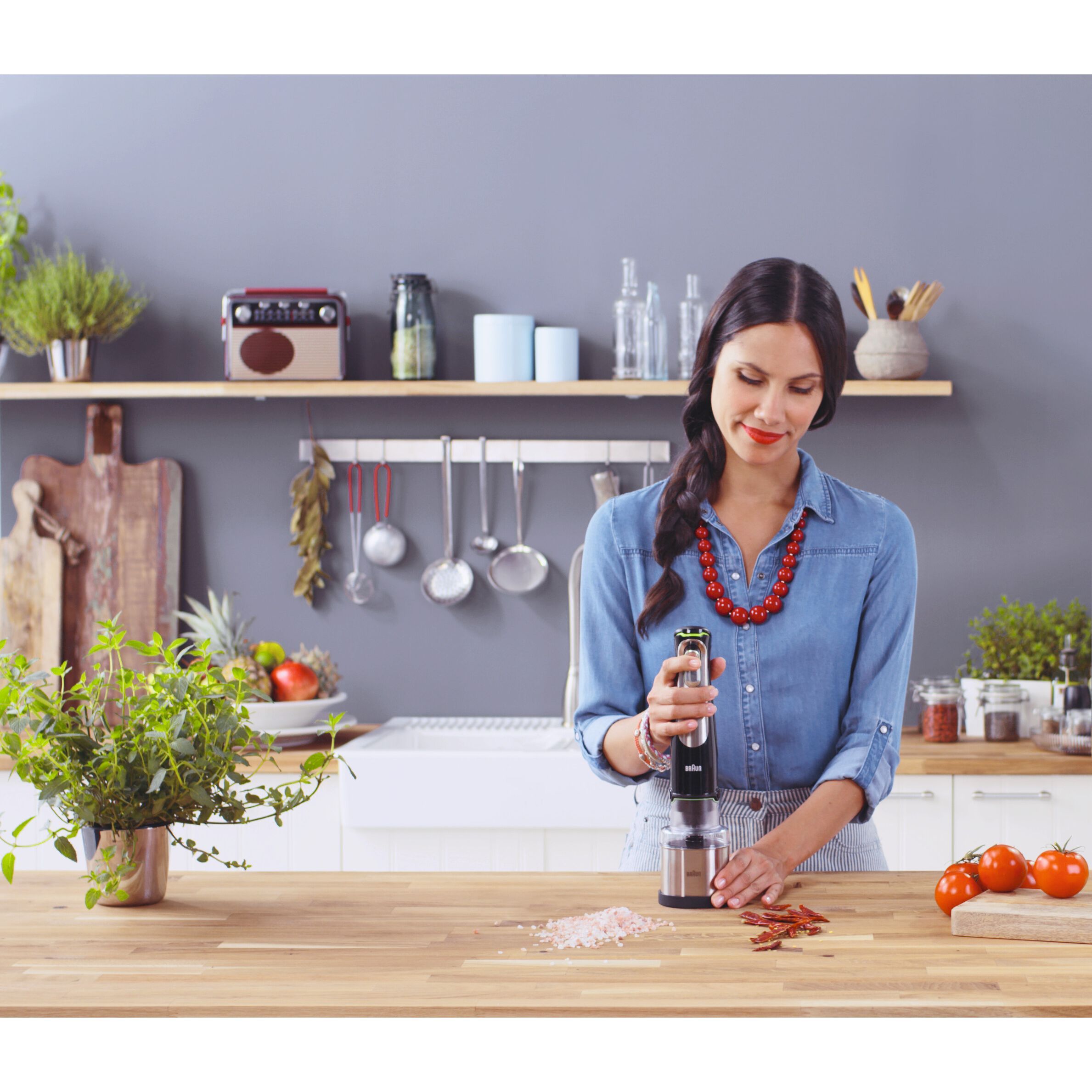 Accesoriul râșniță de cafea și condimente MQS270 vă permite să râșniți toate tipurile de condimente, boabe sau semințe, transformându-le rapid în pulbere, cu ajutorul unui accesoriu din metal, ușor de curățat. Vasul din oțel inoxidabil nu absoarbe mirosurile neplăcute, astfel încât seara puteți măcina ardei iute uscat pentru a prepara curry, iar dimineața boabe de cafea, fără a vă îngrijora că aromele acestora se vor combina.
