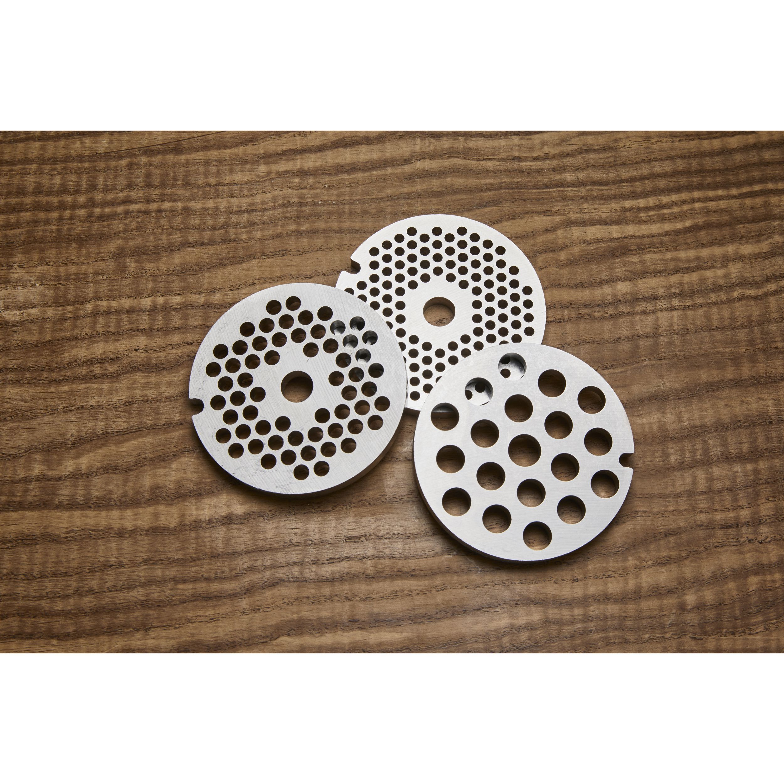 Pentru a acoperi cât mai multe nevoi, pachetul include 3 dimensiuni: o sită fină (ochi de 3mm), o sită medie (ochi de 4,5mm) și o sită grosieră (ochi de 8mm) pentru o gamă largă de rețete și texturi variate.