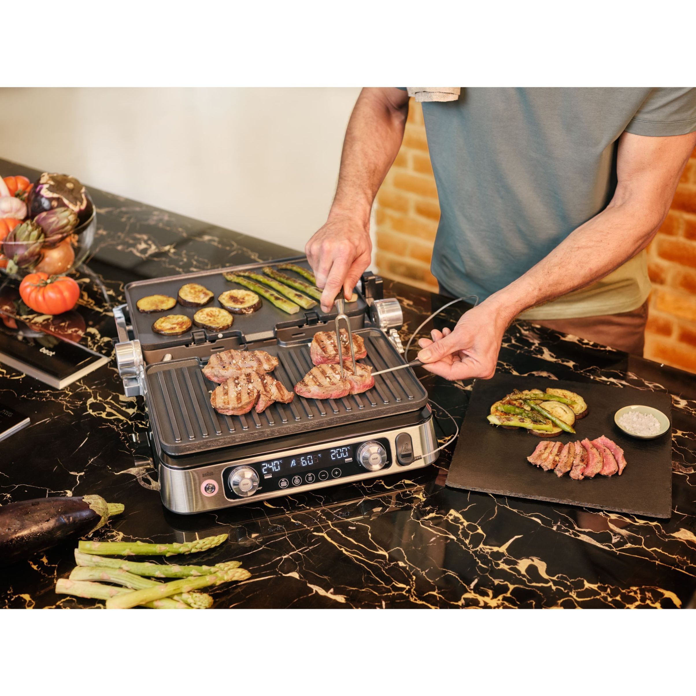 • Elementele de încălzire de 1100W încorporate în plăci (nu sub ele) oferă rezultate de gătit perfecte, reduc timpul de preîncălzire și asigură un răspuns rapid la pierderea de căldură atunci când se pun alimente reci pe plăci
