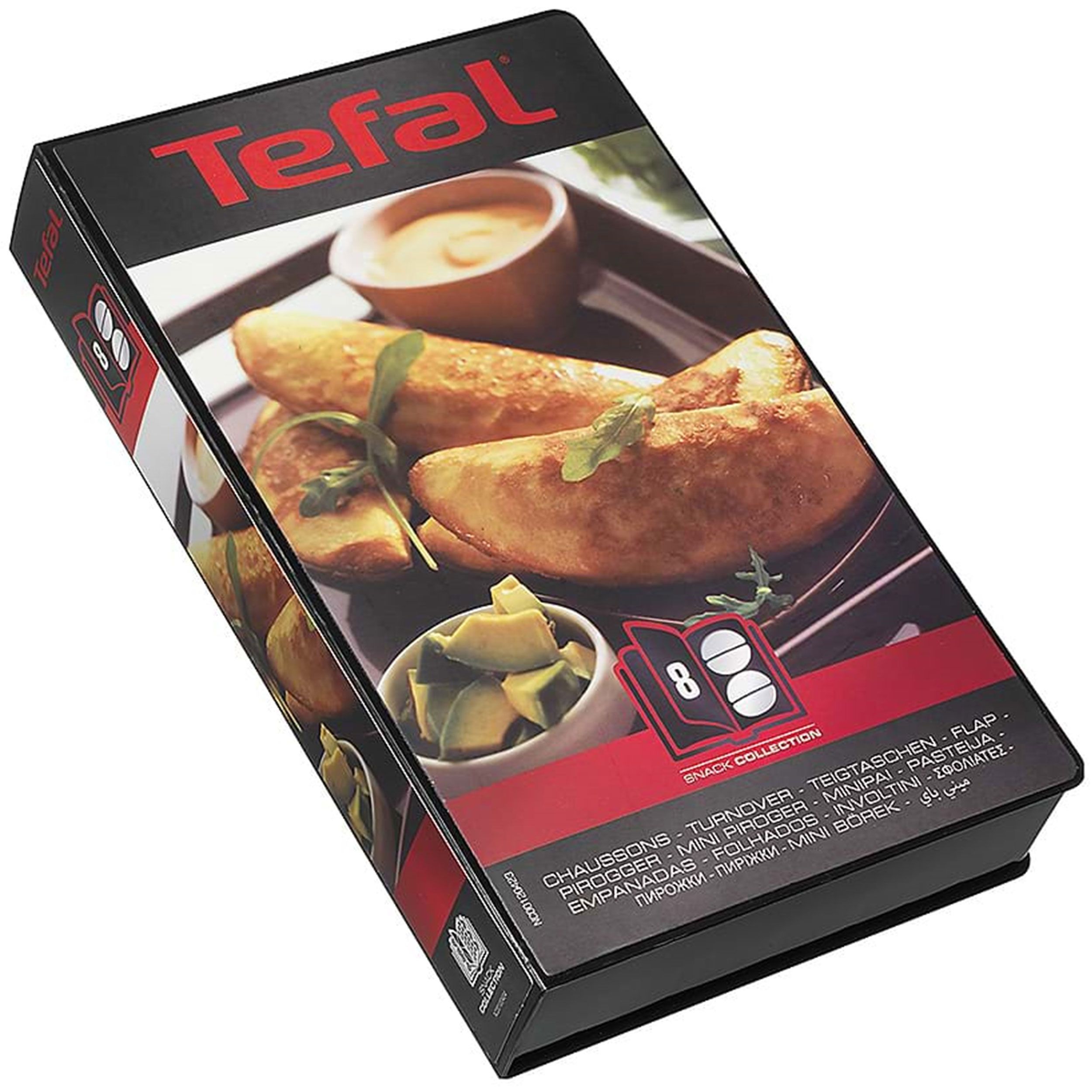 Set de 2 plăci TEFAL Snack Collection no. 8 (Chaussons/Turnover/Empanadas) XA800812, Non-adezive, Cutie tip cookbook pentru depozitare, Sigure pentru mașinile de spălat vase, Carte cu 4 rețete