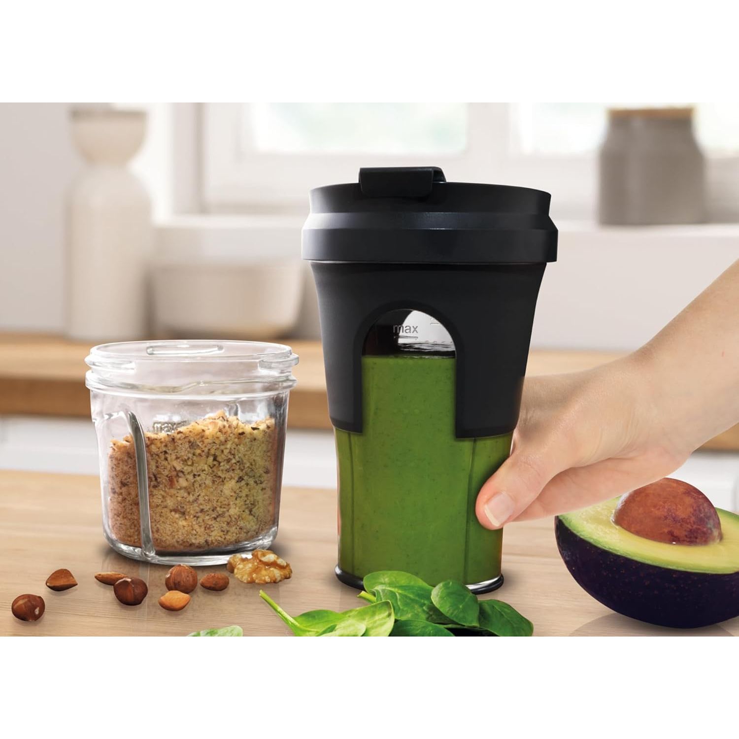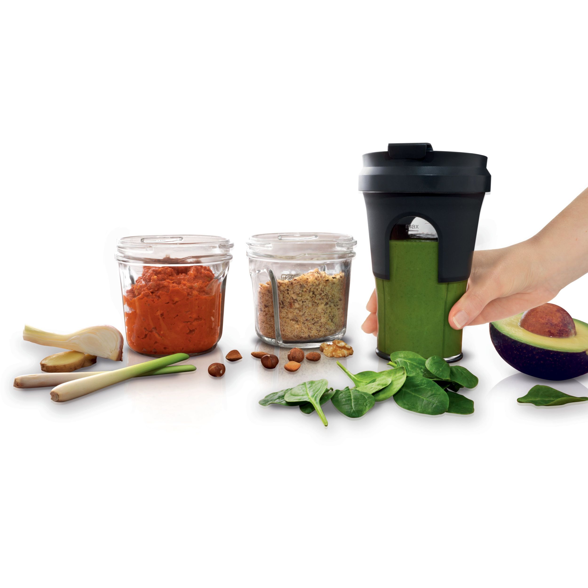 Datorită celor cinci funcții, poți pregăti feluri de mâncare sau smoothie-uri, să le iei cu tine și să te bucuri de acestea în mers. Sosul Pesto, aperitivele sau deserturile delicioase sunt ușor de preparat, datorită râșniței și tocătorului universal, totul se face foarte repede. Smoothie-urile și multe altele le poți prepara proaspete și le poți lua cu tine cu cana utilă ToGo.