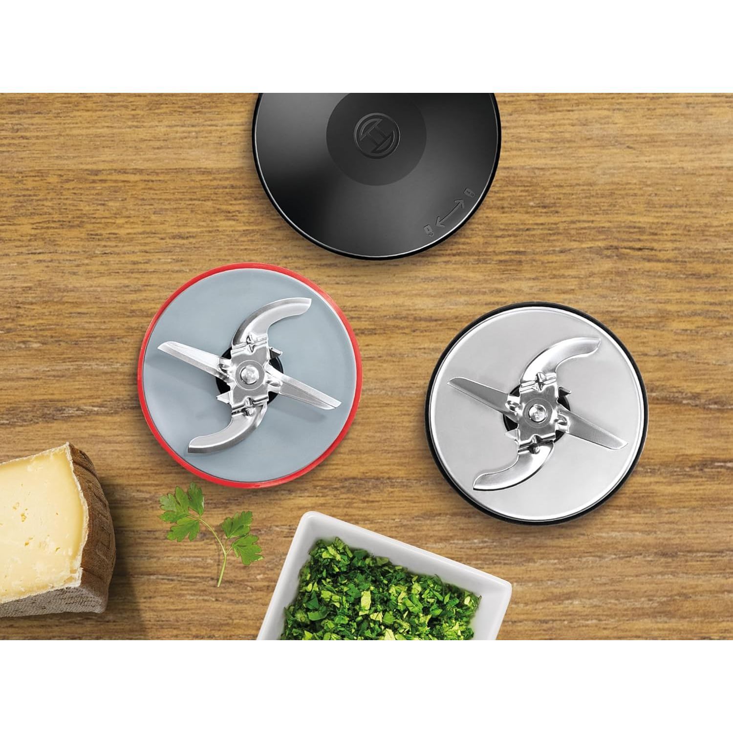 Practic, compact și la modă. Datorită celor cinci funcții (tocător universal, blender cu soluție de depozitare, blender cu funcție ToGo, râșniță de ierburi și râșniță de condimente), puteți pregăti mâncăruri sau smoothie-uri în cel mai scurt timp.