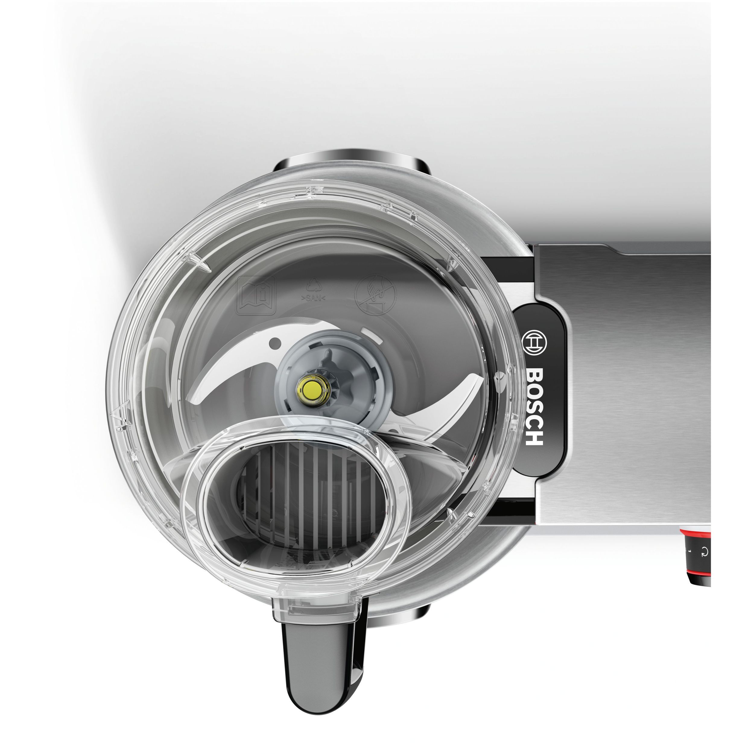 Discurile din oțel inoxidabil și cuțitul de mărunțit nu influențează gustul și sunt ușor de curățat. Capac și împingător transparent