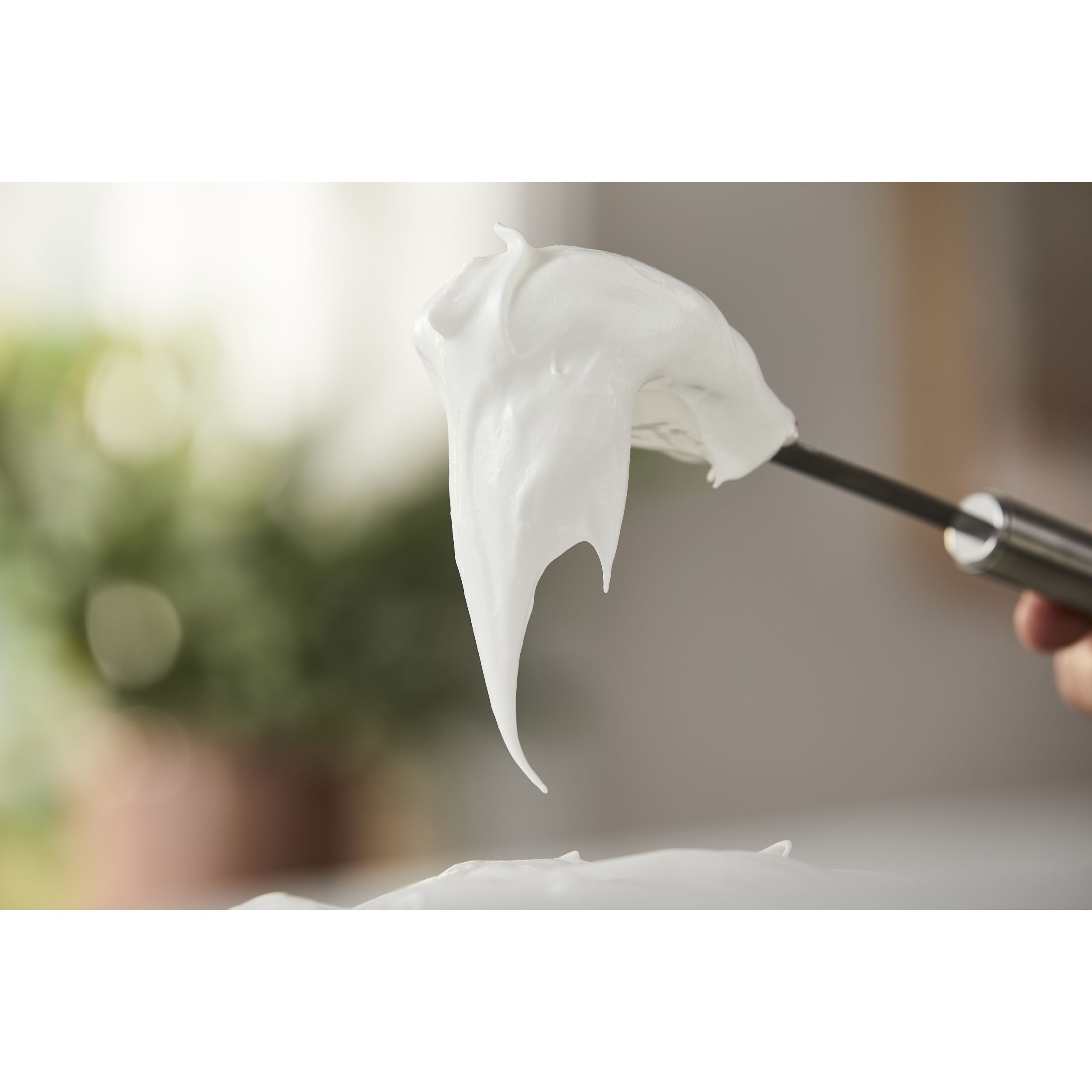 Abordați cantități mici în mod manual cu ajutorul telului din inox și a bolului din metal. Standul cauciucat ajustabil vă ajută enorm la menținerea unei poziții dorite pentru mixare, iar amândouă sunt ușoare de curățat, manual sau la mașina de spălat vase.