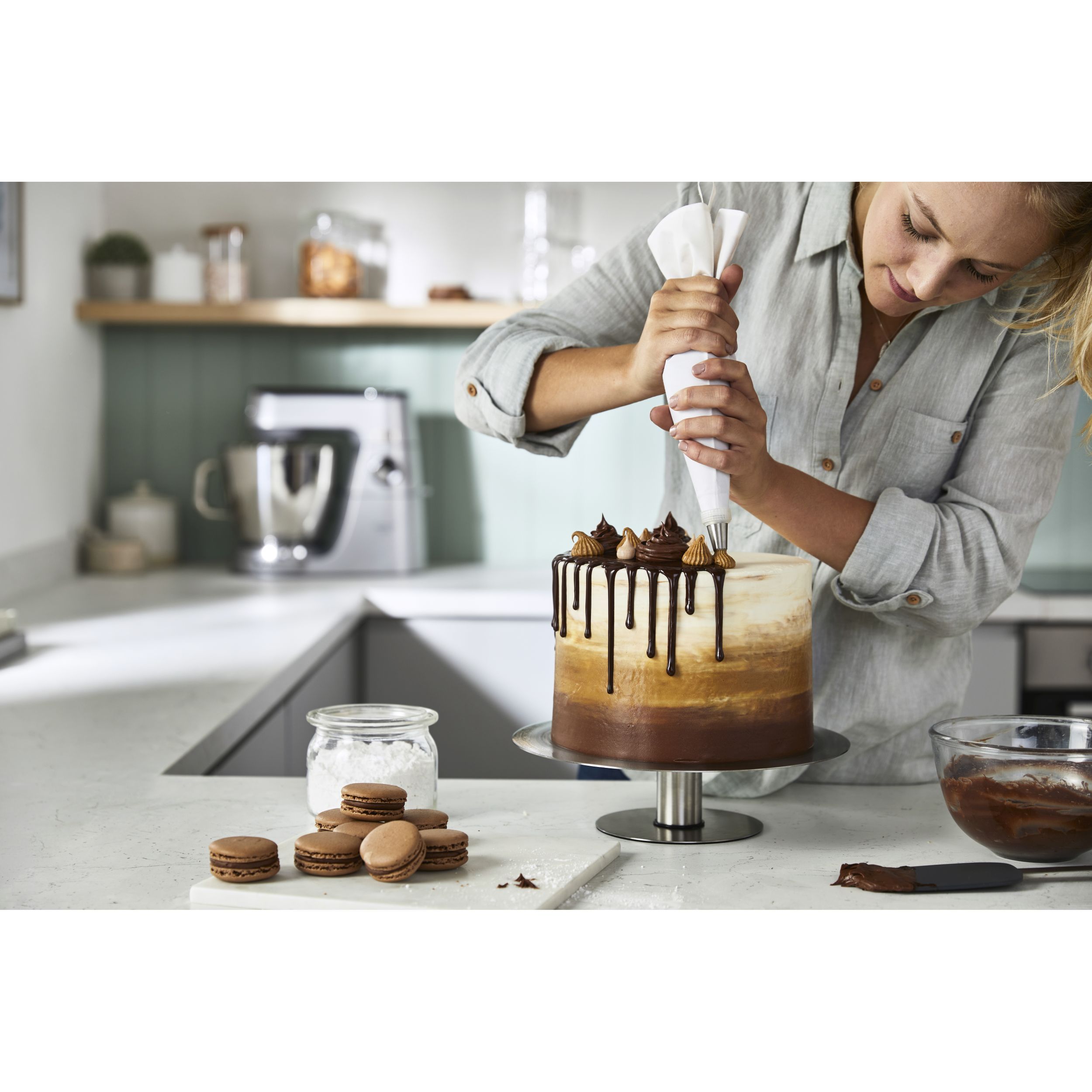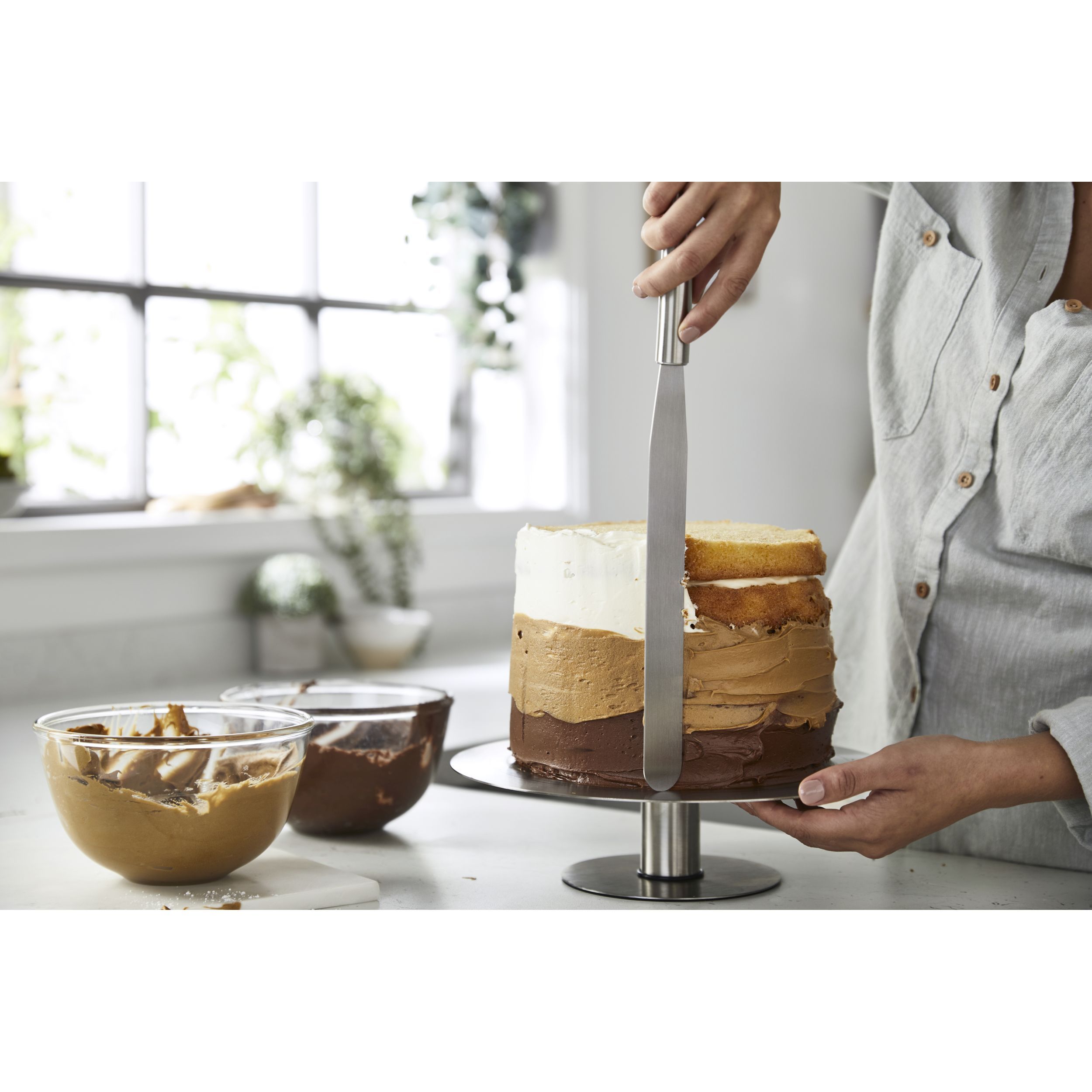 Cu ajutorul acestui suport rotativ din oțel inoxidabil, atât decorarea de torturi cât și utilizarea poșului devin sarcini extrem de ușoare, iar atingerea acelui ombré perfect devine literalmente un proces demn de savurat. Lăsați standul să facă treaba grea, ca toată concentrarea voastră să rămână pe obținerea acelei margini netede.
