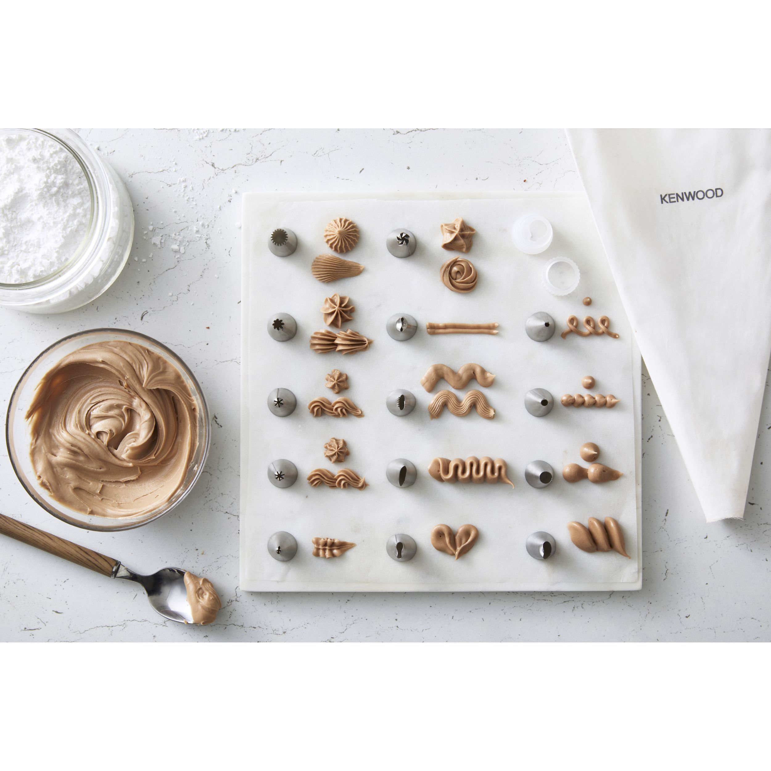 Având un adevărat arsenal de 14 duze diverse, acest set de poș (ce include și pungă reutilizabilă) vine în ajutorul oricui dispus să-și cizeleze aceste îndemânări pentru a obține la final acel finisaj mult dorit.