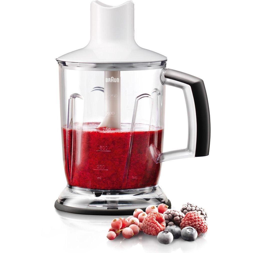 Tocător BRAUN MultiQuick MQ40WH - AX22110064, Capacitate 1.25l, Amestecă, Zdrobește gheața, Sistem EasyClick, Ușor de asamblat, Bază anti-alunecare, Fără BPA, DW Safe (fără capac), Alb