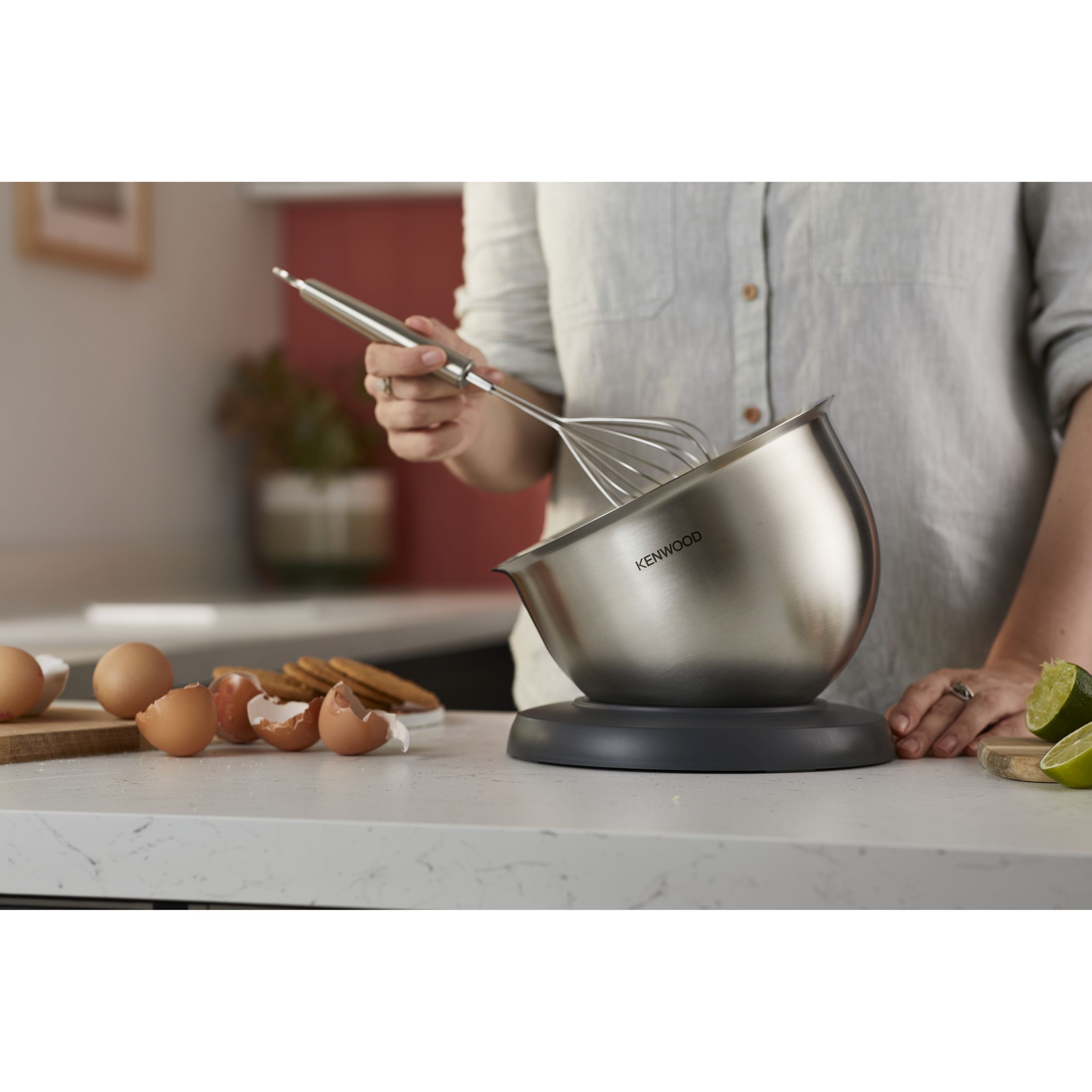 Abordați cantități mici în mod manual cu ajutorul telului din inox și a bolului din metal. Standul cauciucat ajustabil vă ajută enorm la menținerea unei poziții dorite pentru mixare, iar amândouă sunt ușoare de curățat, manual sau la mașina de spălat vase.