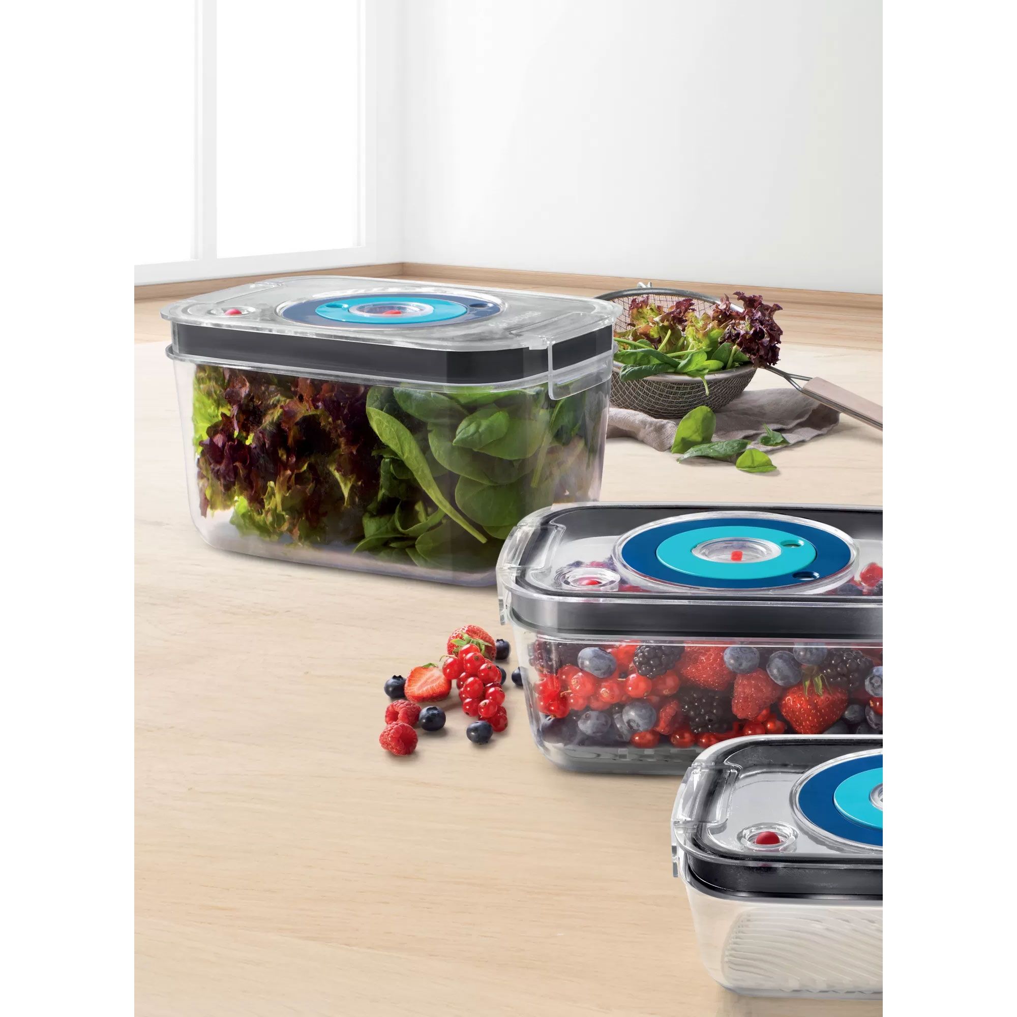 Sunt incluse 3 caserole pentru vidare (0,90 l, 1,20 l și 1,70 l).