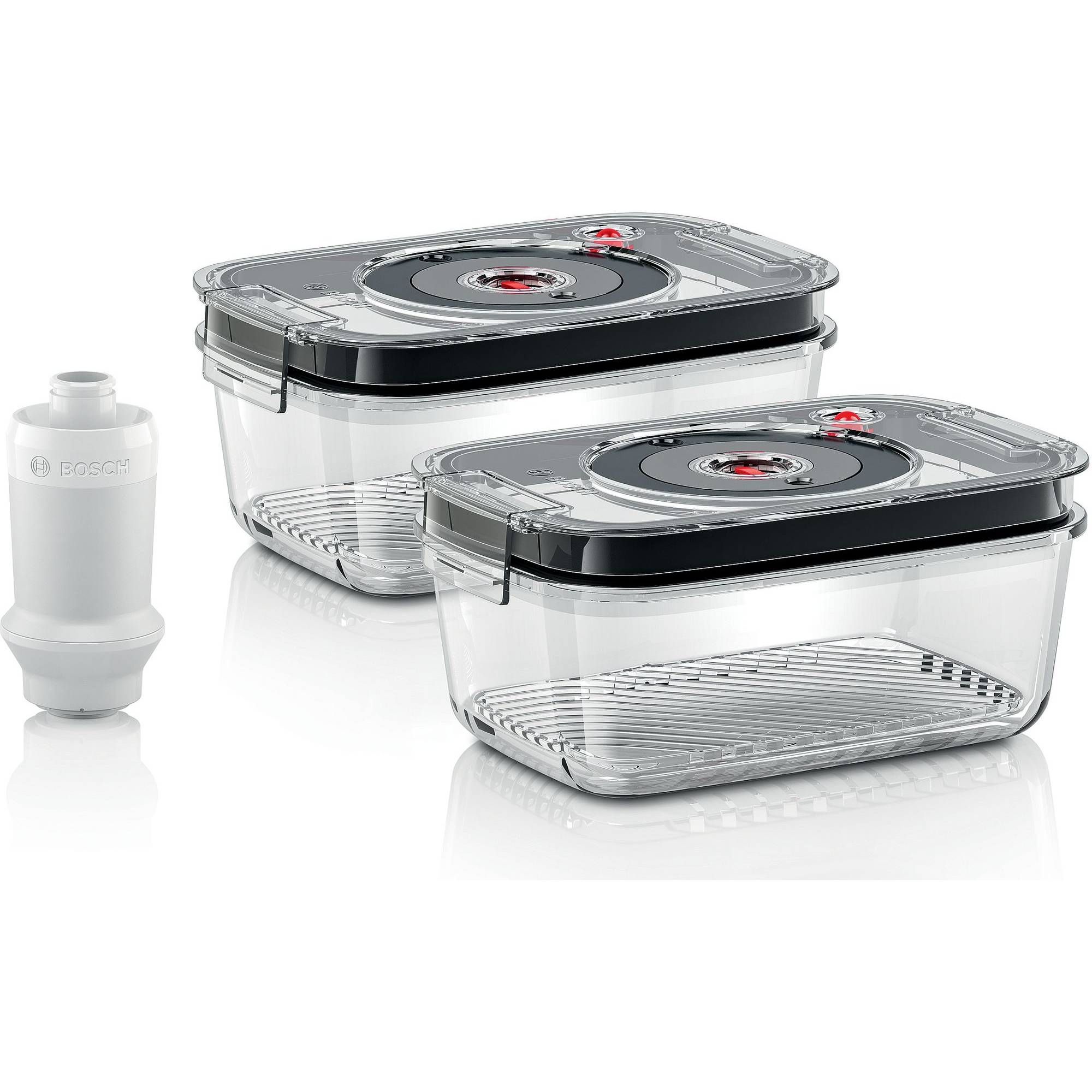 SIGURANȚĂ. Recipient pentru vidat din sticlă borosilicată: rezistent la temperatură (-20 ° C - 250 ° C), poate fi folosit în congelator, cuptor și cuptorul cu microunde. Capac din Tritan: rezistent, nu lasă gust sau miros mâncării.