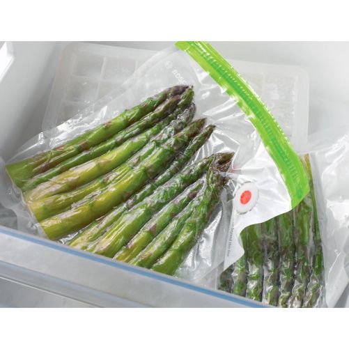 Prospețime îndelungată: datorită pungilor pentru vidare alimentele sunt păstrate proaspete mai mult timp prin depozitarea în frigider sau congelator.