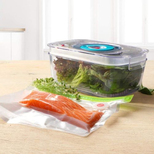 Caserolele pentru vidare sunt o modalitate ușoară de a păstra alimentele proaspete mai mult timp. Sunt făcute din Tritan, nu conțin BPA, sunt ușor de folosit, inclusiv în cuptorul cu microunde și pot fi spălate în mașina de spălat vase.
